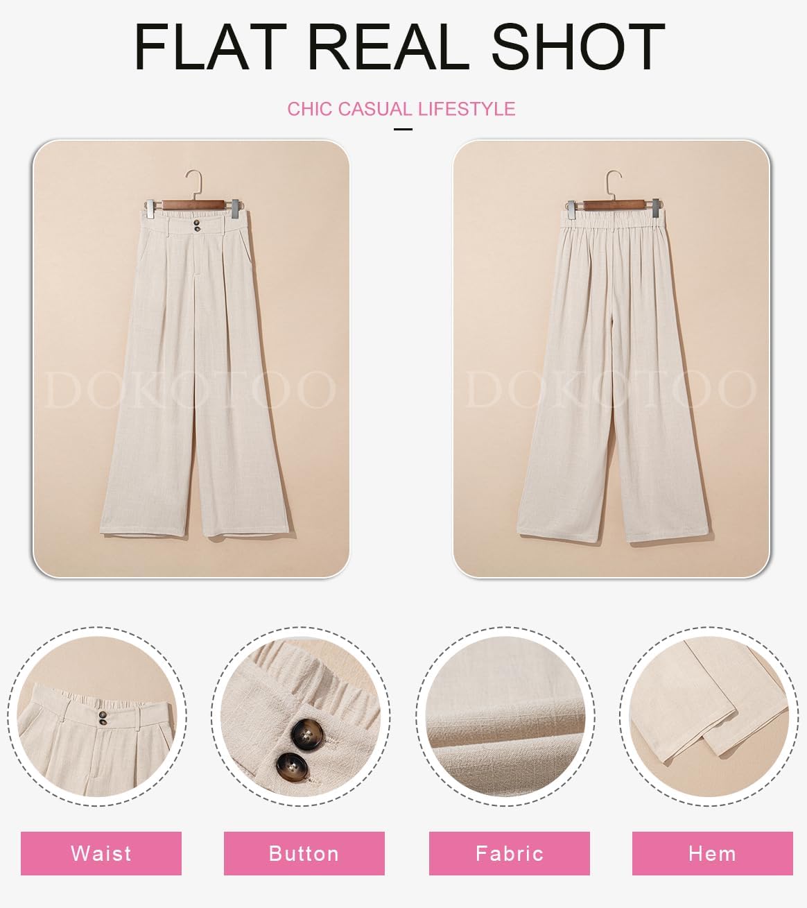 Dokotoo Womens Linen Pants Casual Loose Wide Leg Pants for Women Elastic Waist Palazzo Pants Trousers with Pockets