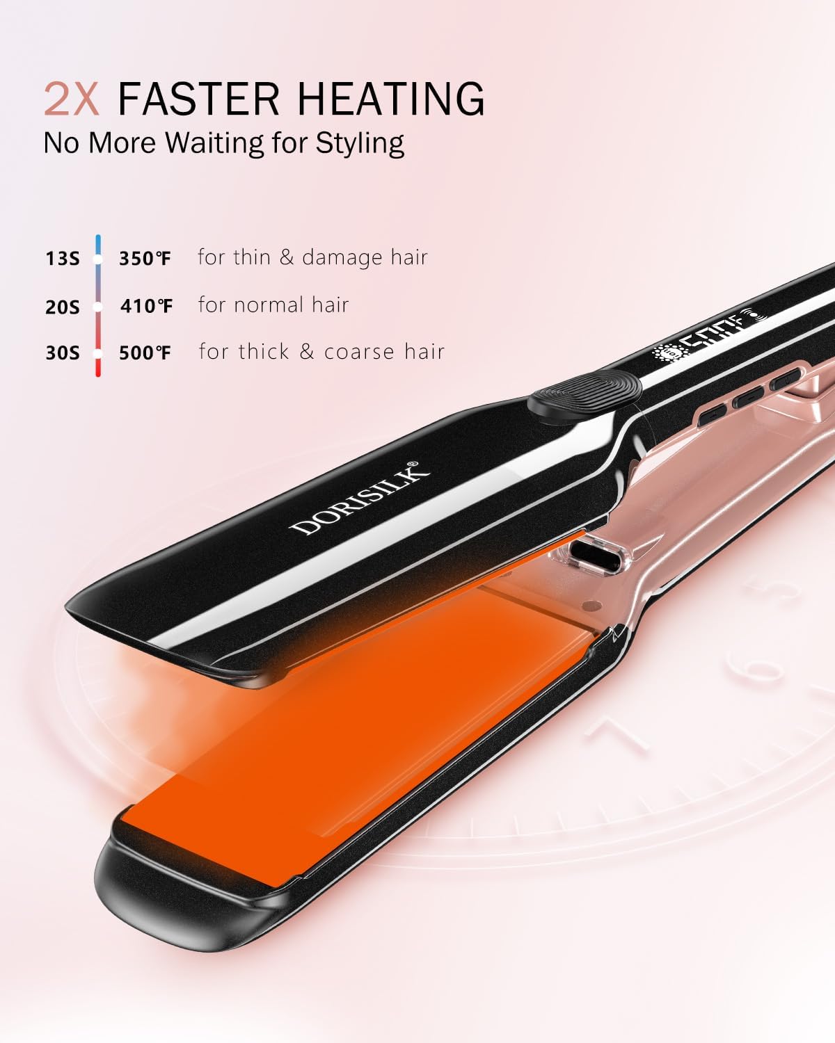 DORISILK 500 Degree High Temp Professional Hair Straightenr , Ceramic Wide Flat Iron ,2 in 1 Hair Straightener and Curler,Plasma Flat Iron Get Frizz-Free and Shiny 500FW1
