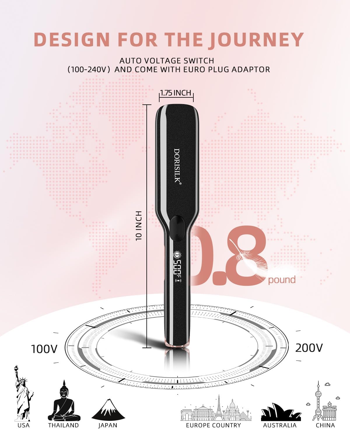 𝐒𝐀𝐋𝐎𝐍-𝐋𝐈𝐊𝐄 𝐄𝐗𝐏𝐄𝐑𝐈𝐄𝐍𝐂𝐄: Dorisilk salon-gradeFlat Iron, boasting meticulous temperature control and rapid temperature recovery, fast reaches an impressive 500ºF (260°C) for constant and stable styling. It efficiently straightens all hair types, from short curls to long locks, in a single pass, even thick, coarse hair.