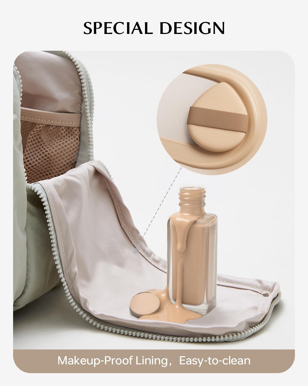No worries—our inner lining is easy to wipe clean, so any makeup stains can be removed effortlessly, keeping your bag fresh and spotless.