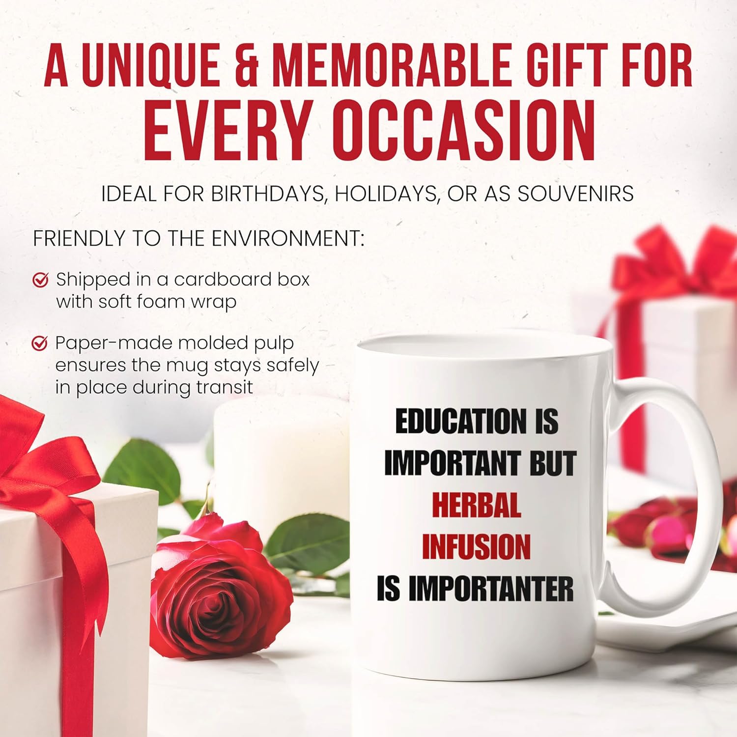 Education Is Important But Herbal Infusion Is Importanter Mug – Tea Aficionado Coffee Cup – Healer Funny Gift From – Wellness Mugs – Herbalist Cups – 11 Oz Ceramic Gifts For Lovers, Birthday, Him