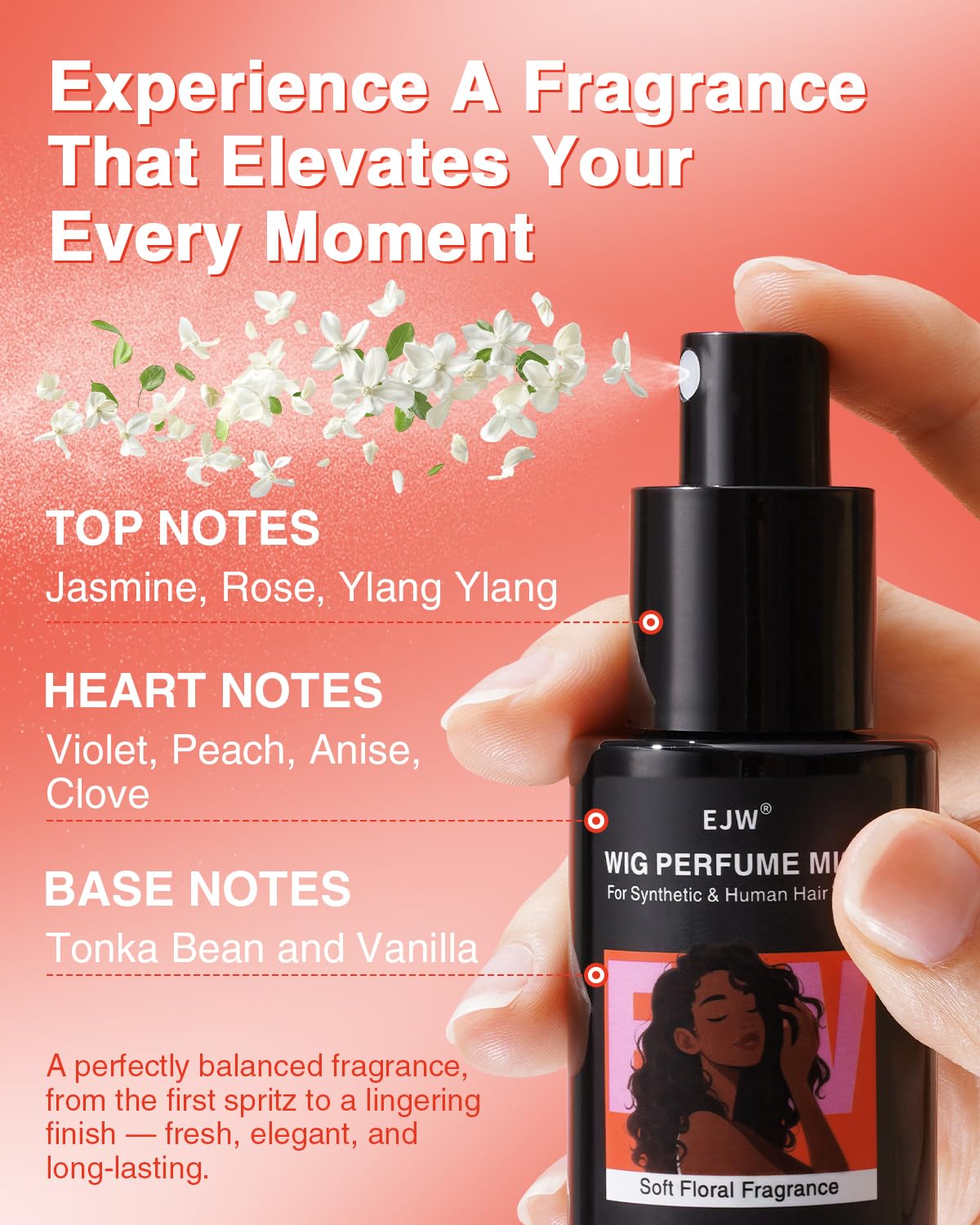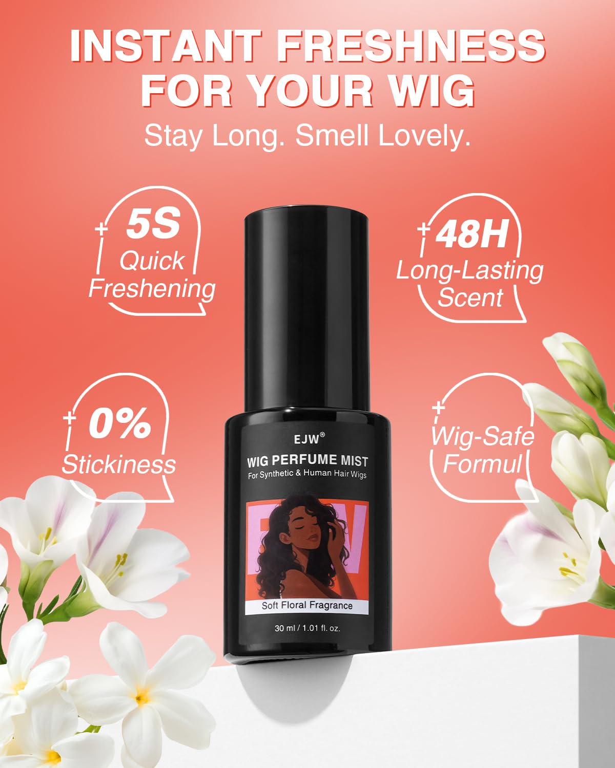 EJW Wig Perfume Mist – Refreshing Hair Fragrance for Synthetic & Human Hair Wigs – Odor Neutralizing, Softening & Shine-Enhancing – 3.38 fl. oz