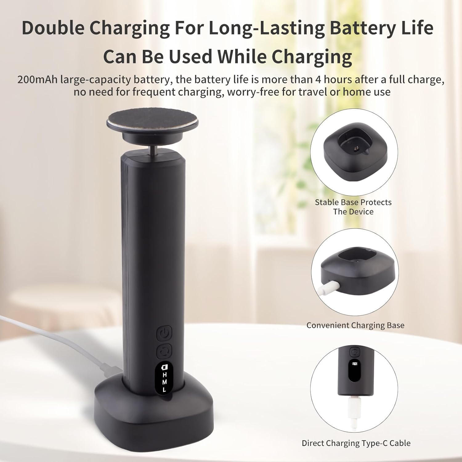 🦶Wireless Electric Callus Remover: This foot callus remover is truly wireless, saying goodbye to cable entanglement and restricted movement. Equipped with a 1200mAh large-capacity battery, it can last for more than 4 hours when fully charged. Equipped with a universal Type-C fast charging port, you can travel without worries.