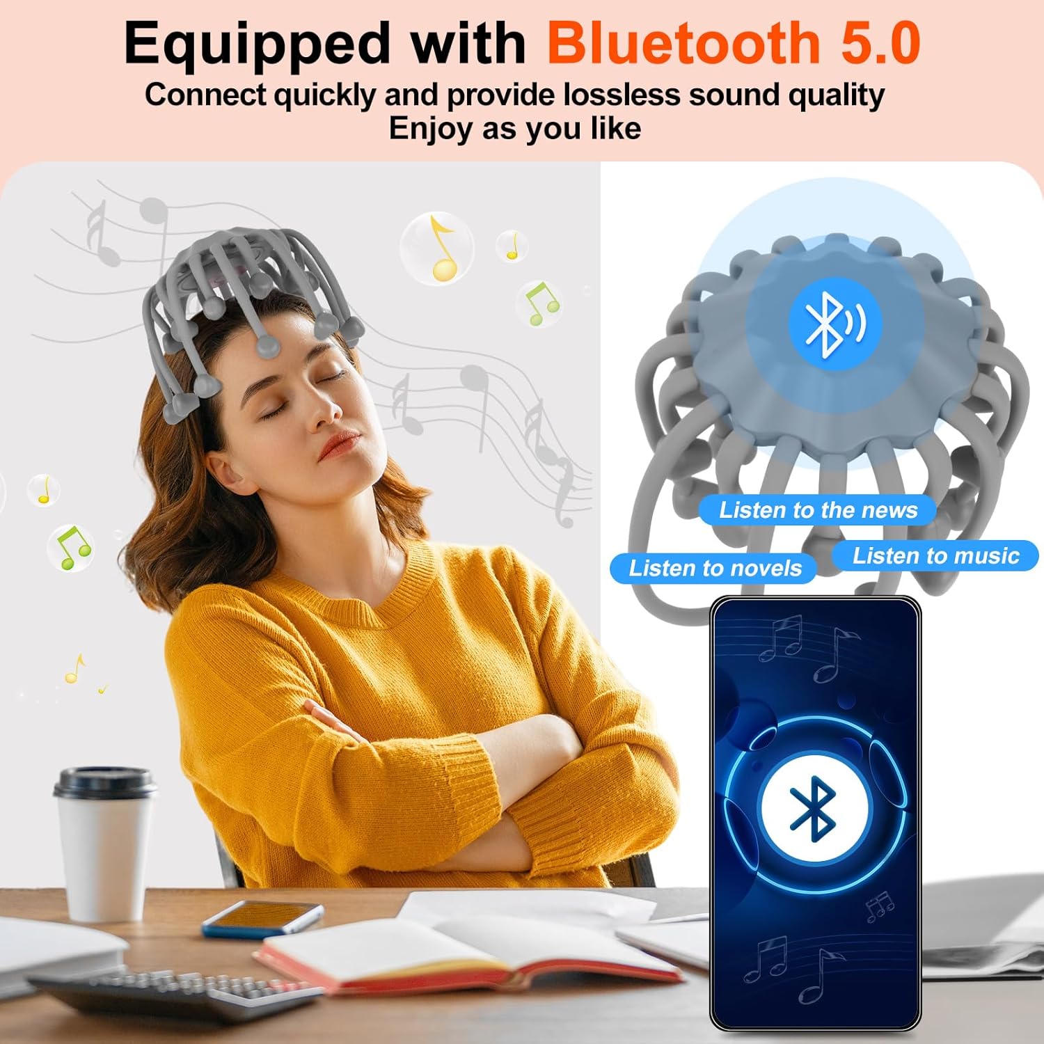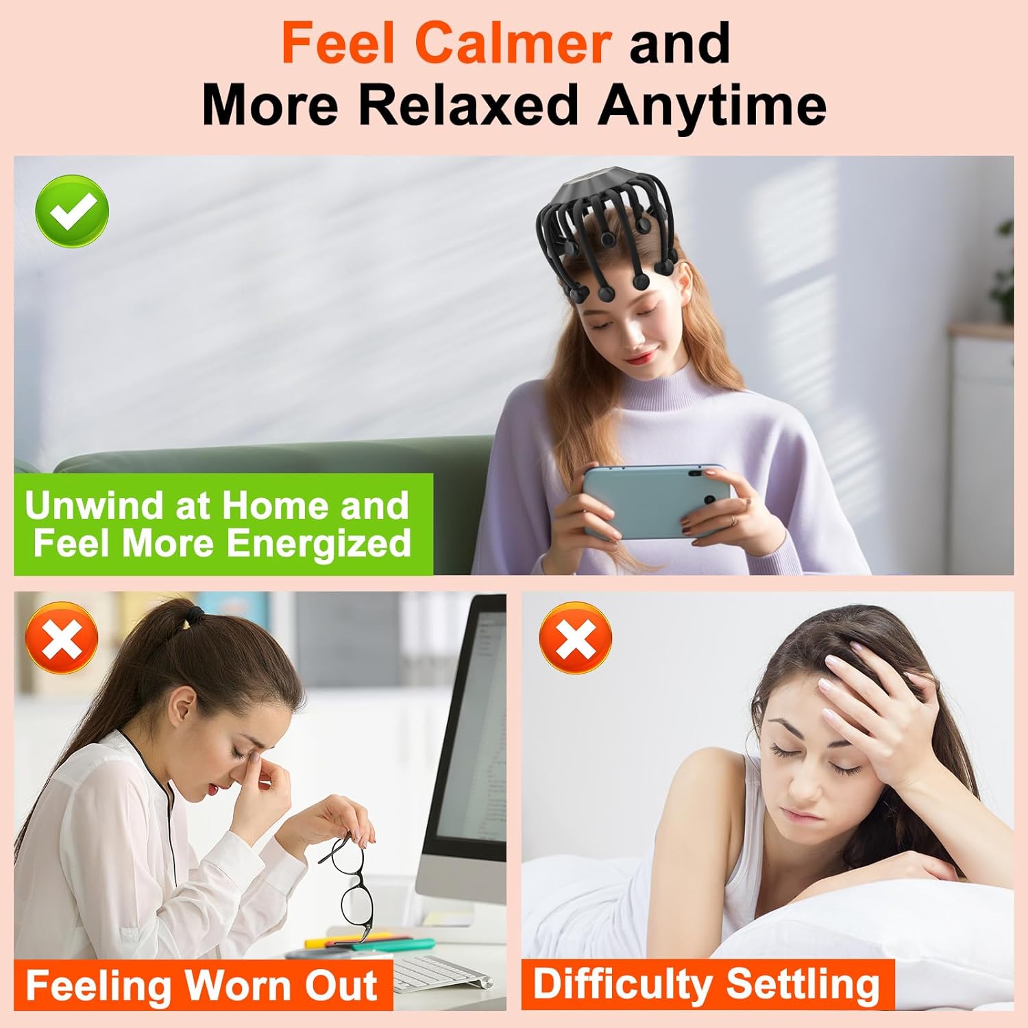 【Quiet Operation for Head Massager Relaxation:】Experience serene relaxation with this scalp massager, crafted for ultra-quiet performance to elevate your electric scalp massager experience. Its silent design ensures undisturbed comfort, perfect for a head massager session anytime, anywhere. With a focus on gentle scalp stimulation, this scalp massage tool provides a soothing effect, ideal for unwinding after a busy day or during quiet moments.