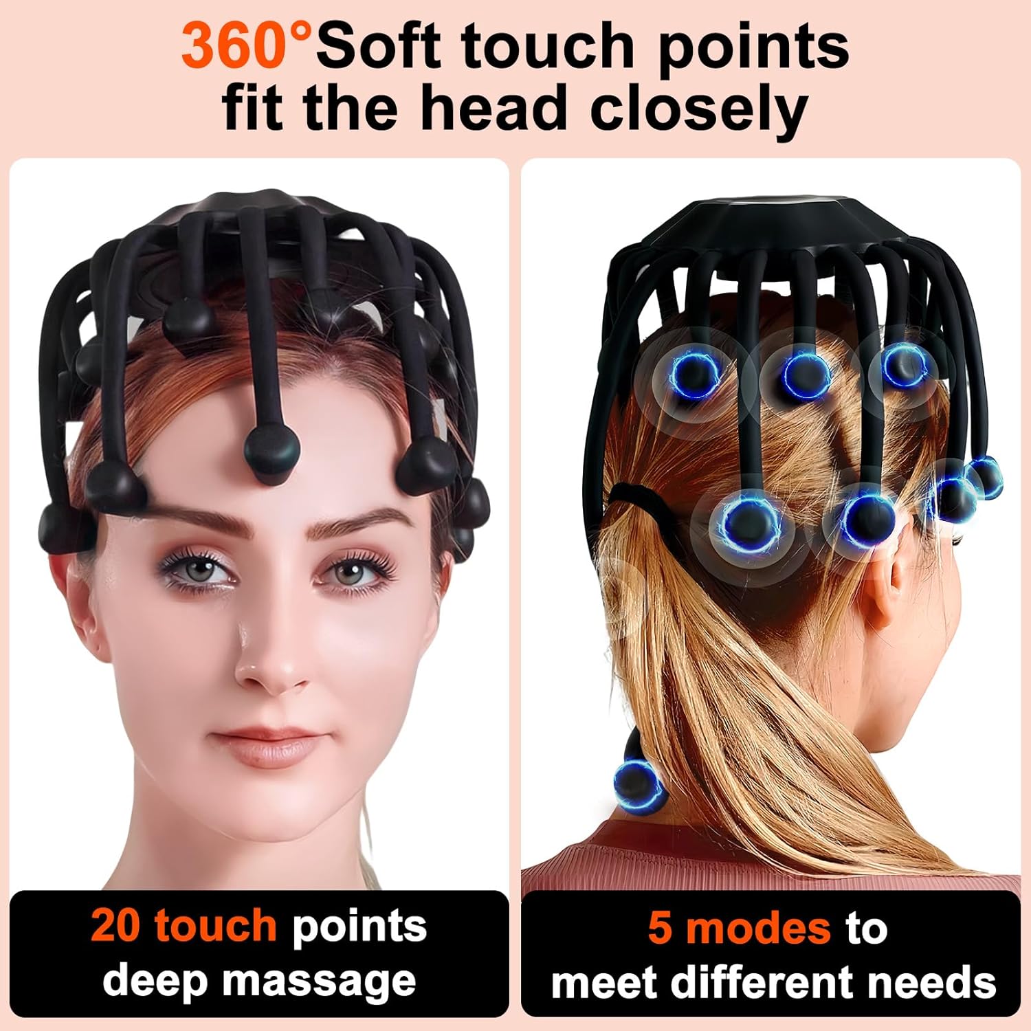【Portable Scalp Massager with 20 Nodes】 Take relaxation on the go with this scalp massager electric device, featuring 20 massage nodes and weighing just 500g for effortless portability. Designed as a compact head massager, it fits any travel bag, making it a versatile scalp massage tool for home or away, with simple touch control for a convenient massage experience.
