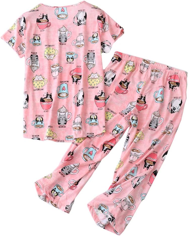 ENJOYNIGHT Womens Pajama Sets Cotton Summer Pjs Tops with Capri Pants Sleepwear