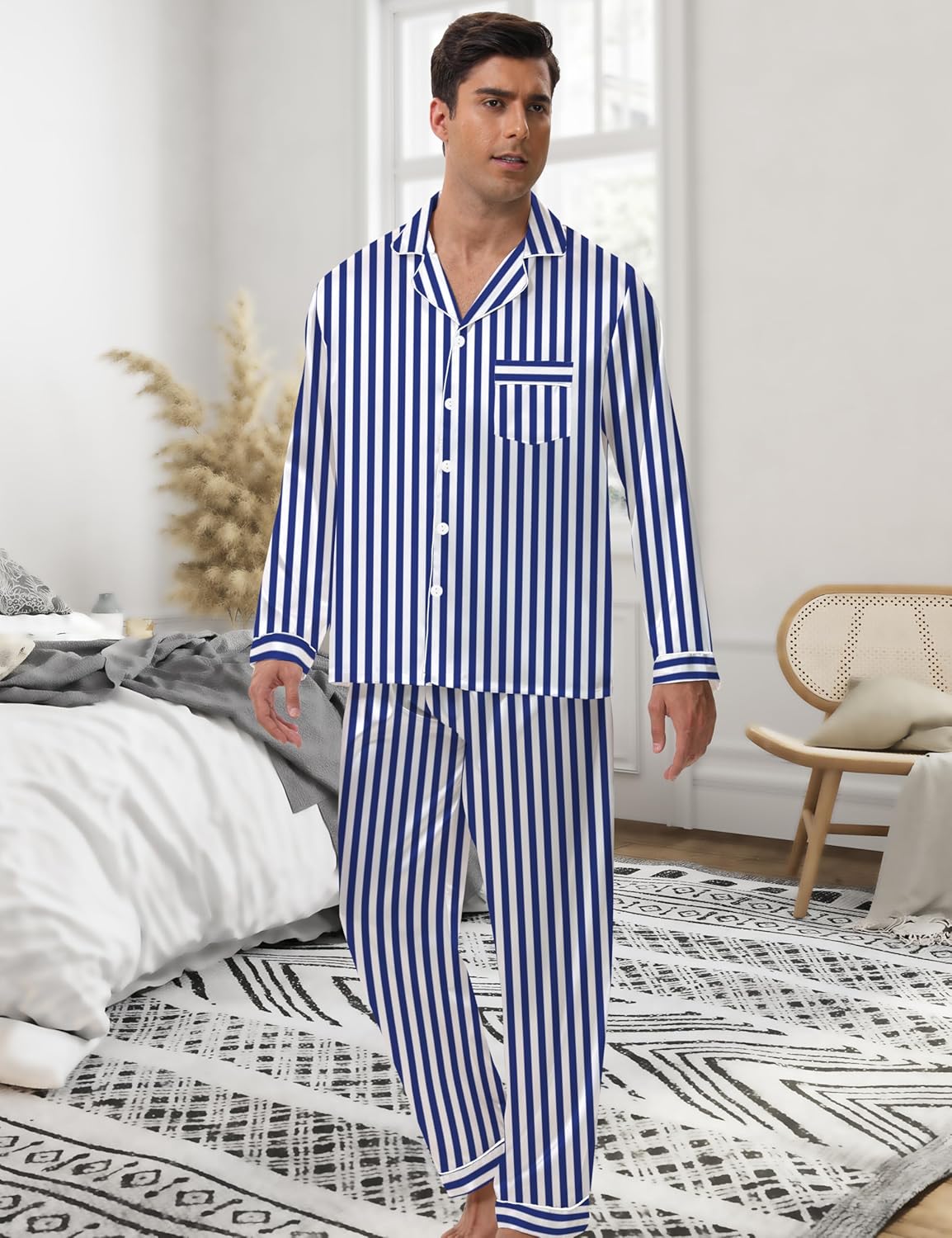 EPLAZA 2 Piece Silk Pajamas for Men Satin Pajama Set Button Down Pjs Set Sleepwear Loungewear