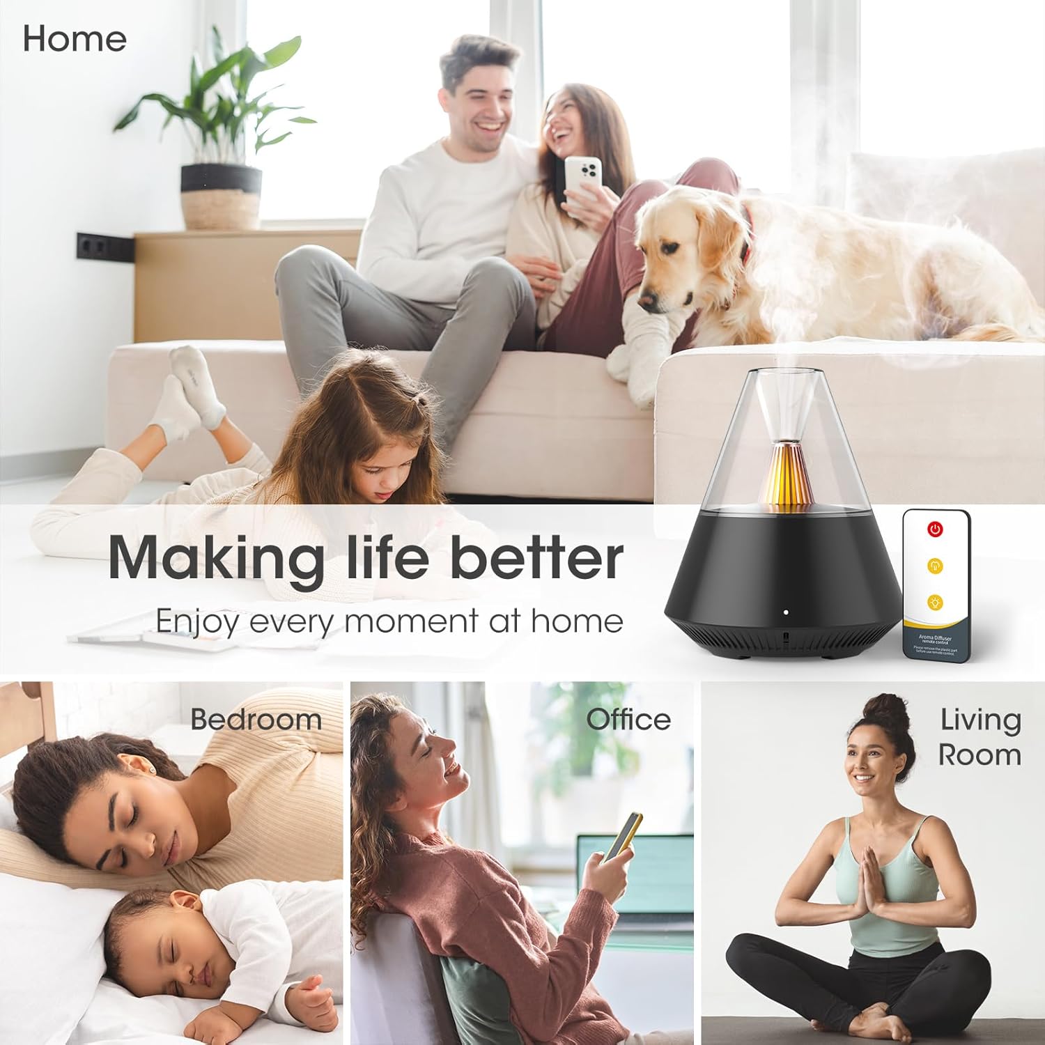 Essential Oil Diffuser, Modern Style Aromatherapy Aroma Diffusers with Candle Light, Fragrance Ultrasonic Cool Mist Humidifier, Remote Control, Auto Shut-Off, for Home Living Room Office