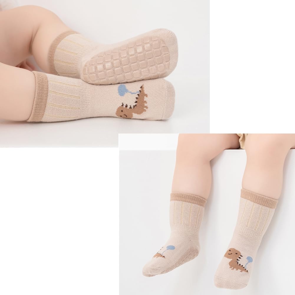 Exegawe Toddler Non Slip Socks, Cute Baby Socks with Grips Crew Socks 5 Pairs