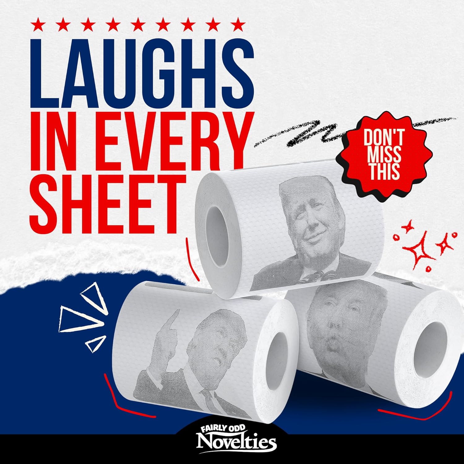 Bi-Partisan Bathroom Humor: Whether you’re a devoted fan, a passionate critic, or somewhere in between, this Donald Trump toilet paper brings a lighthearted twist to your bathroom experience.