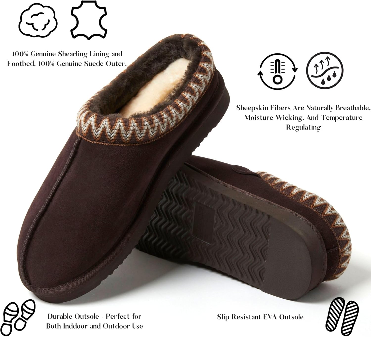 Fireside by Dearfoams Men’s Grafton Shearling Slipper, Memory Foam Suede Clog, Indoor/Outdoor Slip-in House Shoes
