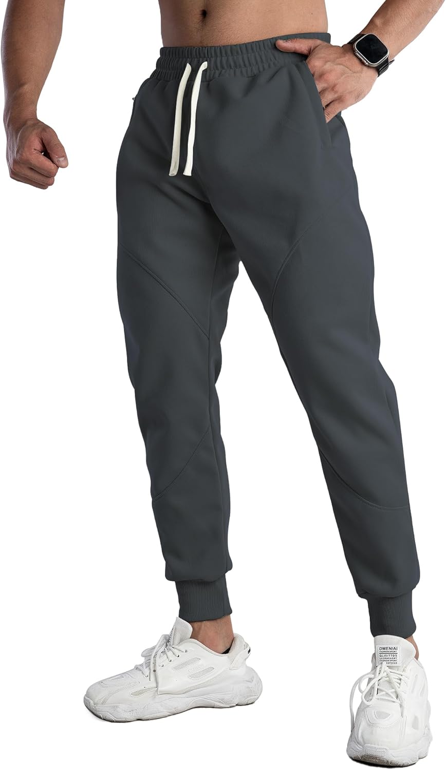 FIRSTGYM Mens Sweatpant Tapered Jogger Active Training Pants with Zipper Pockets