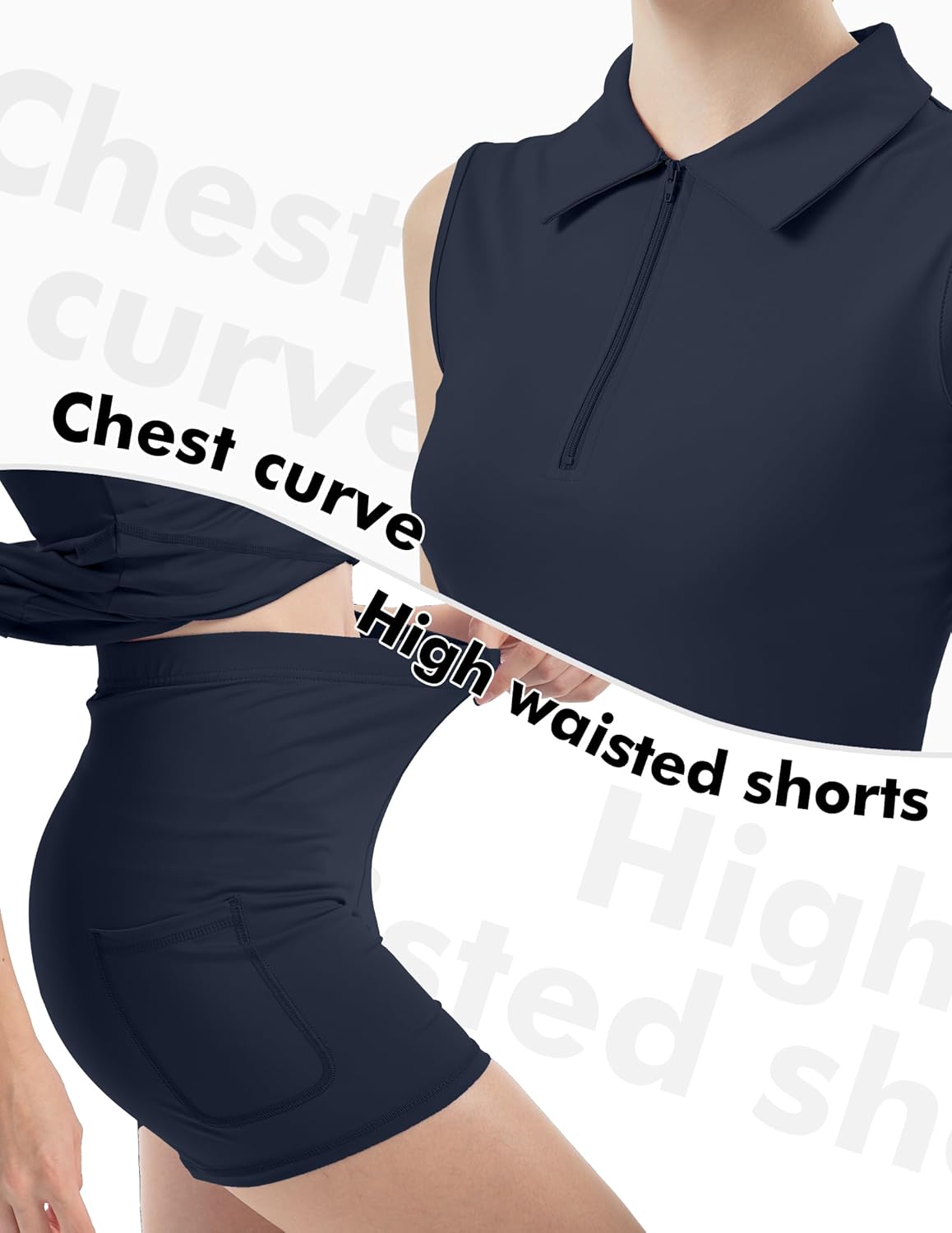 FKEEP Women’s Tennis Golf Dresses Zipper V-Neck Sport Activewear with Shorts and Pocket Workout Athletic