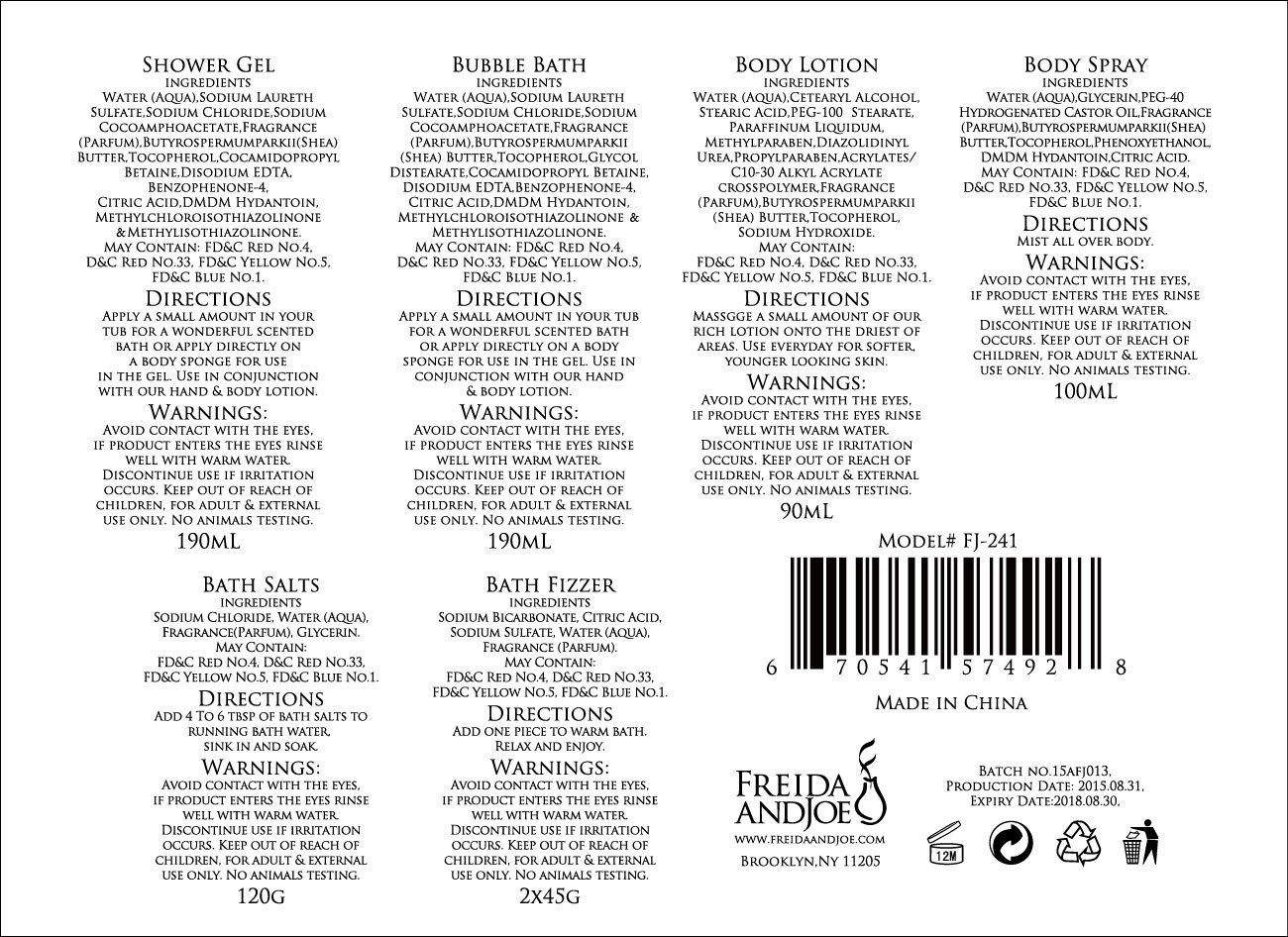 FREIDA AND JOE QUALITY PROMISE – Made from ingredients sourced from high quality suppliers, fragrance sourced from the United Kingdom for an exquisite spa experience
