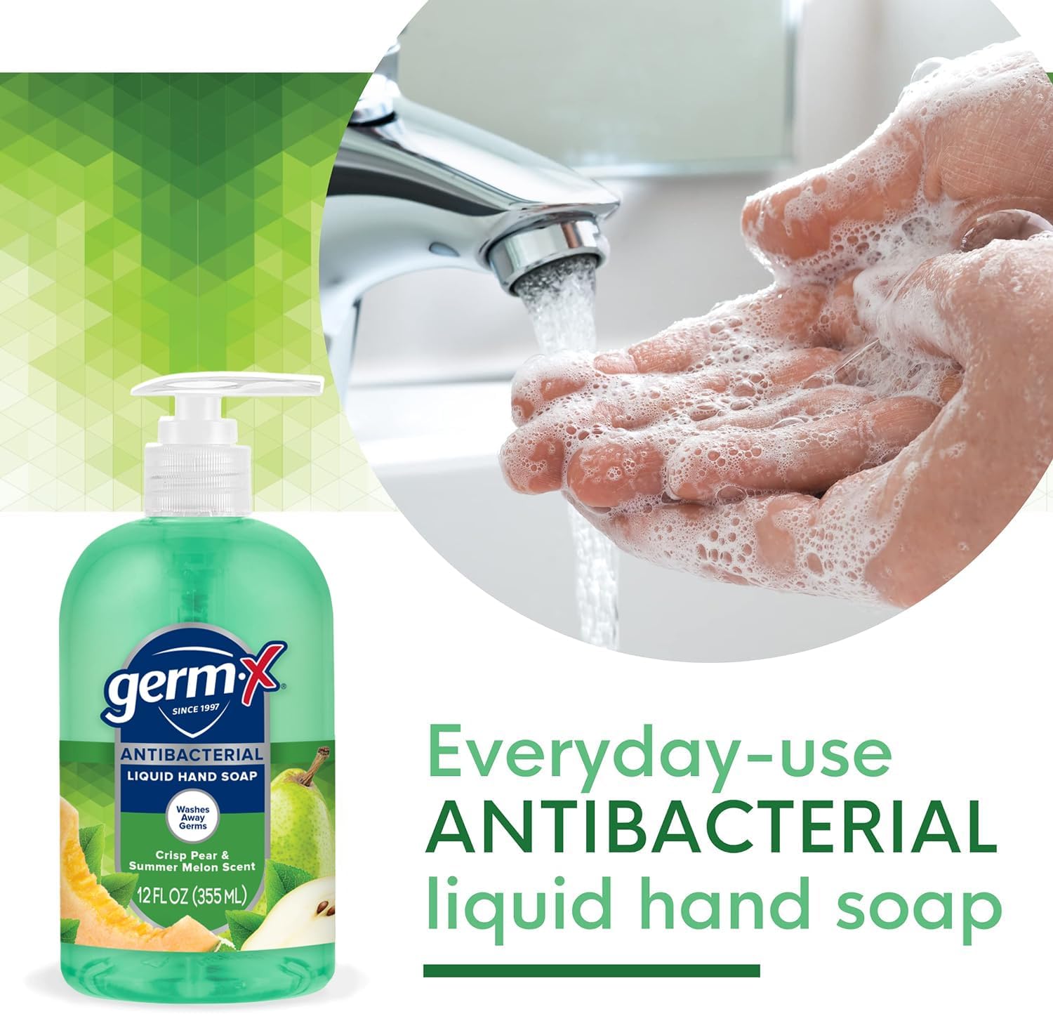 Germ-X Antibacterial Hand Soap, Moisturizing Liquid Hand Wash for Kitchen, pH Balanced & Dermatologist Tested, Back to School Supplies, Crisp Pear & Summer Melon, 12 oz Pump Bottle (Pack of 4)
