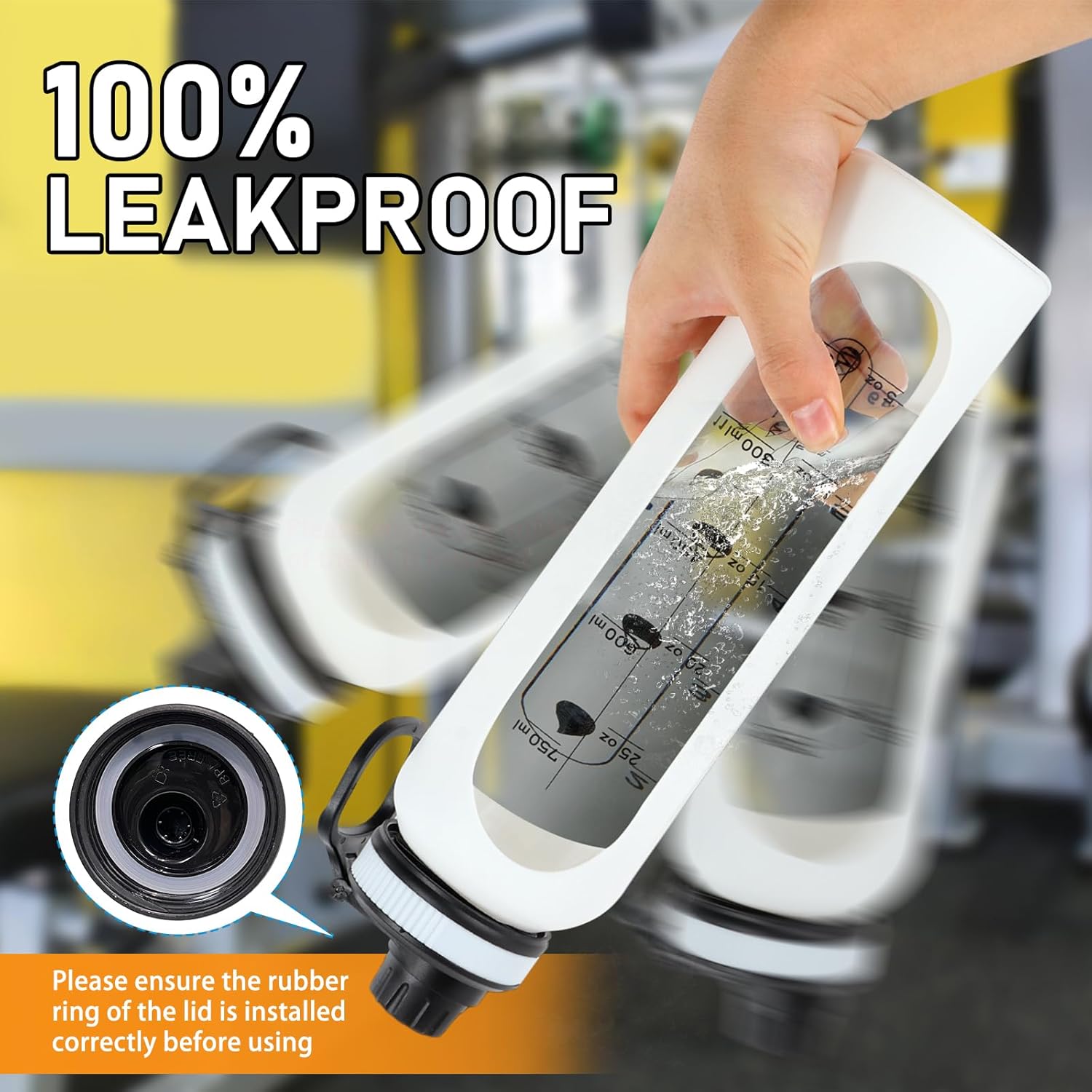 Glass Shaker Bottle 34oz/1L White Glass Protein Shaker Bottle With Shaker Ball Large Shaker Bottles for Protein Mixes Portable Powder Mixer Blender Water Bottle for Gym Workout Sports