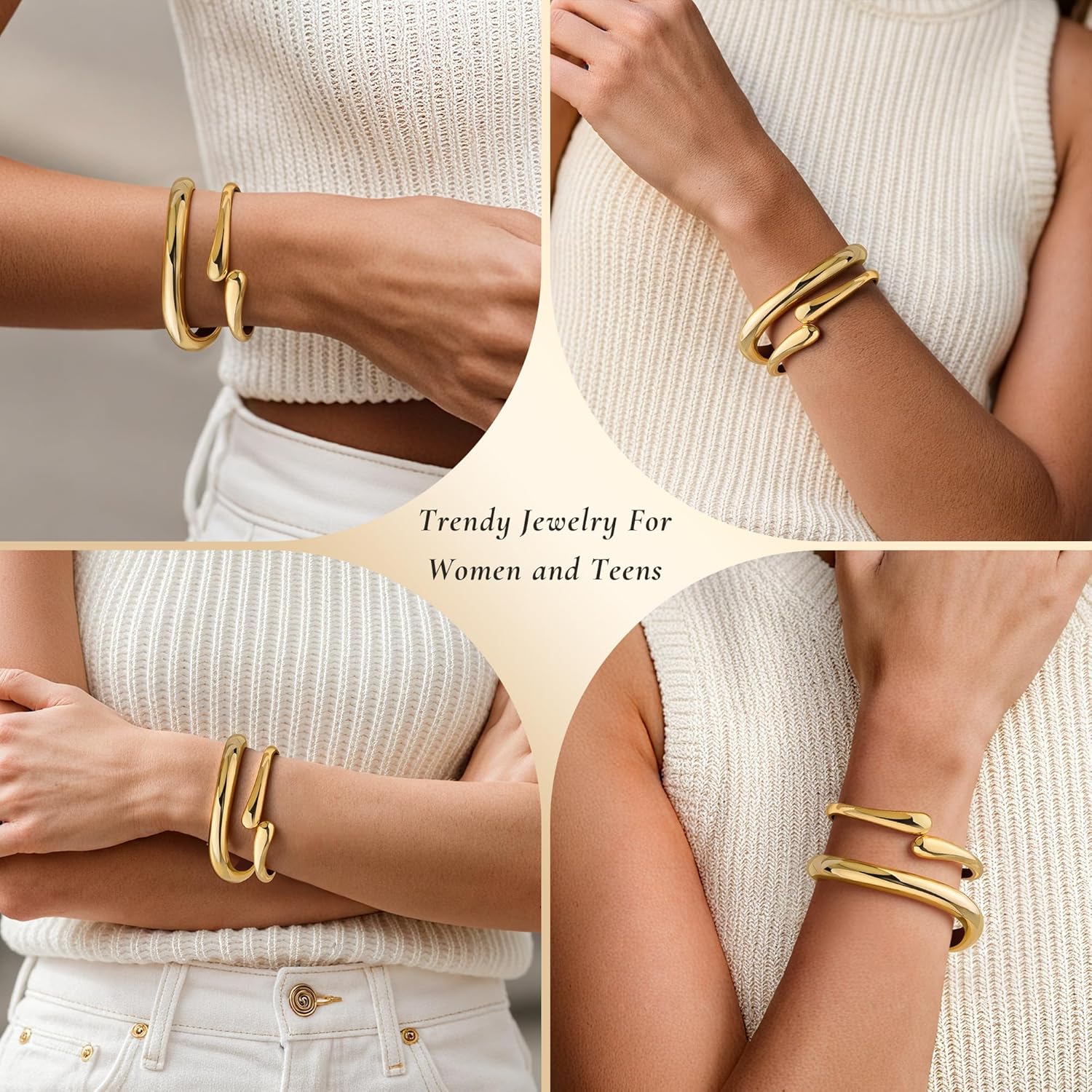 Gold Bangle Bracelets for Women Cuff Stackable Waterproof Non Tarnish Bracelet Stack Silver Plated 14k Chunky Bangles Jewelry Set for Woman