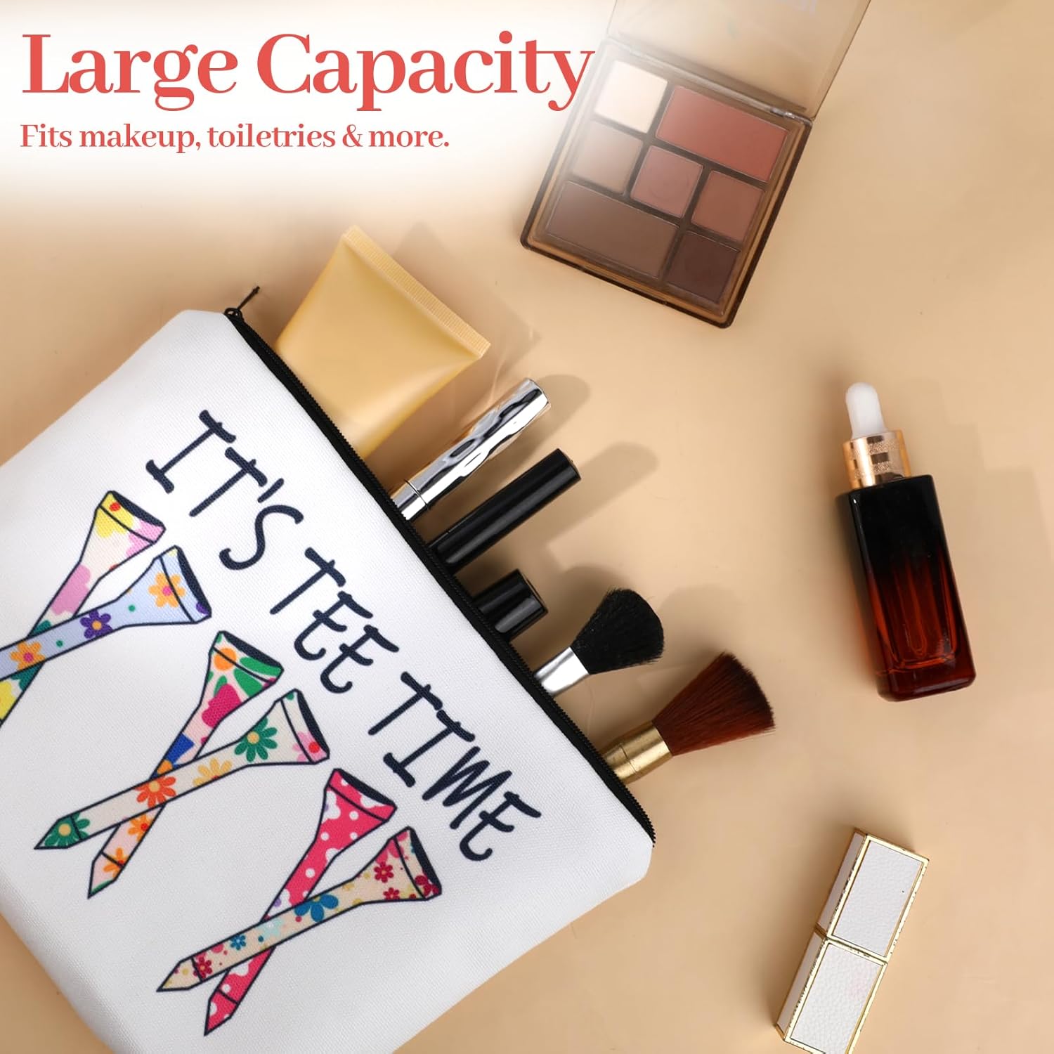 Playful Golf Theme: This golf gifts makeup bag features the fun phrase “It’s Tee Time” with colorful floral tees, making it a cheerful gift for golfers who love both the game and stylish accessories. The golf bags for women is a perfect blend of sporty and chic