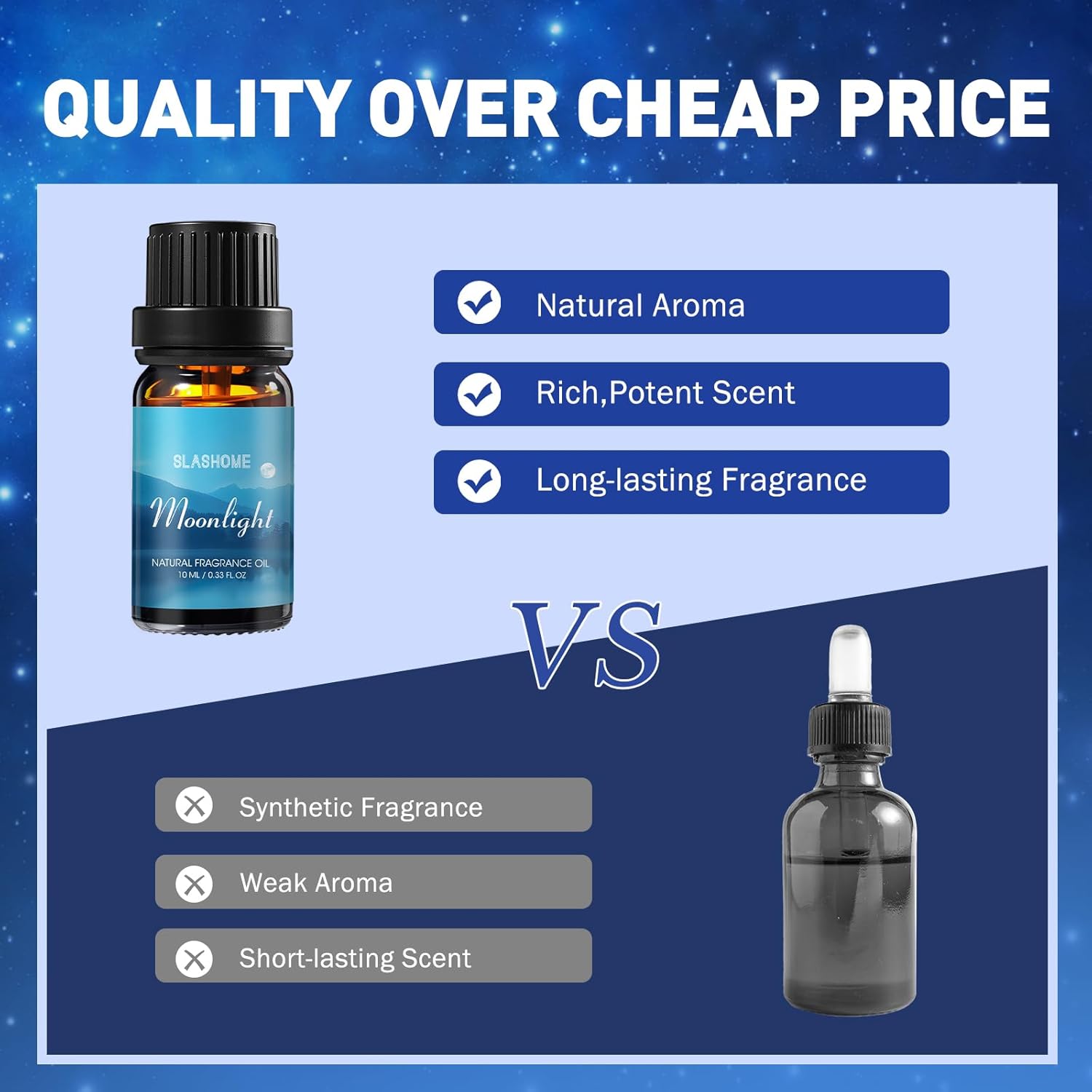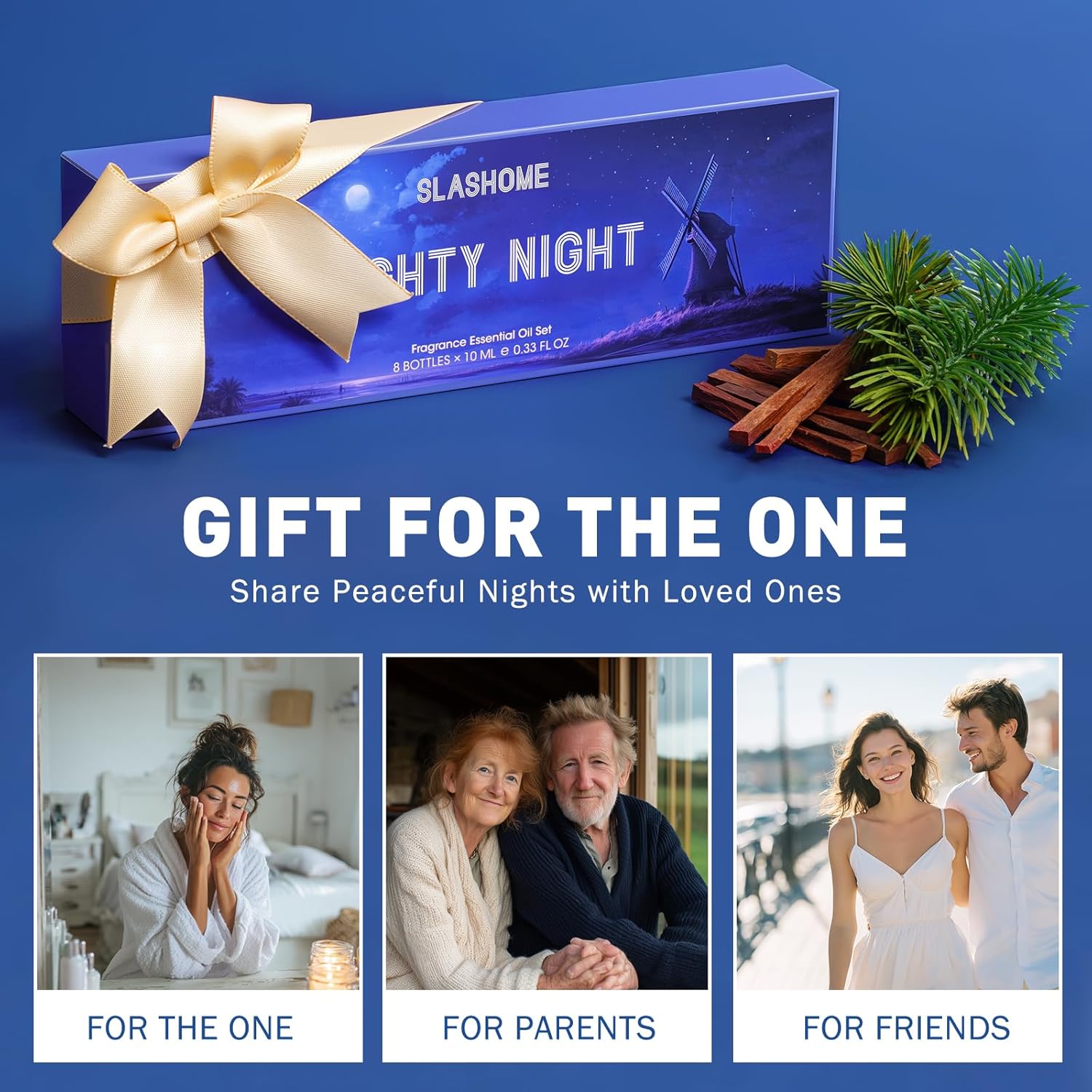【TRANQUIL BEDTIME AROMAS】Our Good Night Essential Oils Set brings serenity to your evenings with 8 soothing scents: Sleepy Time, Rest Well, Moonlight, Dream Sweetly, Peaceful Night, Warm Embrace, Calm Mind, Lullaby. Each 0.34 fl oz bottle captures the calm of moonlit nights—perfect for diffusers, bedtime routines, or creating a peaceful sleep environment. Let gentle aromas guide you toward deep rest and sweet dreams