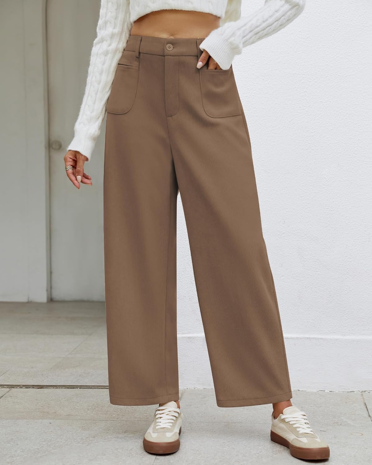 GRAPENT Barrel Pants for Women High Waisted Corduroy Elastic Waist Trendy Loose Casual Fall Trousers Pants with Pockets