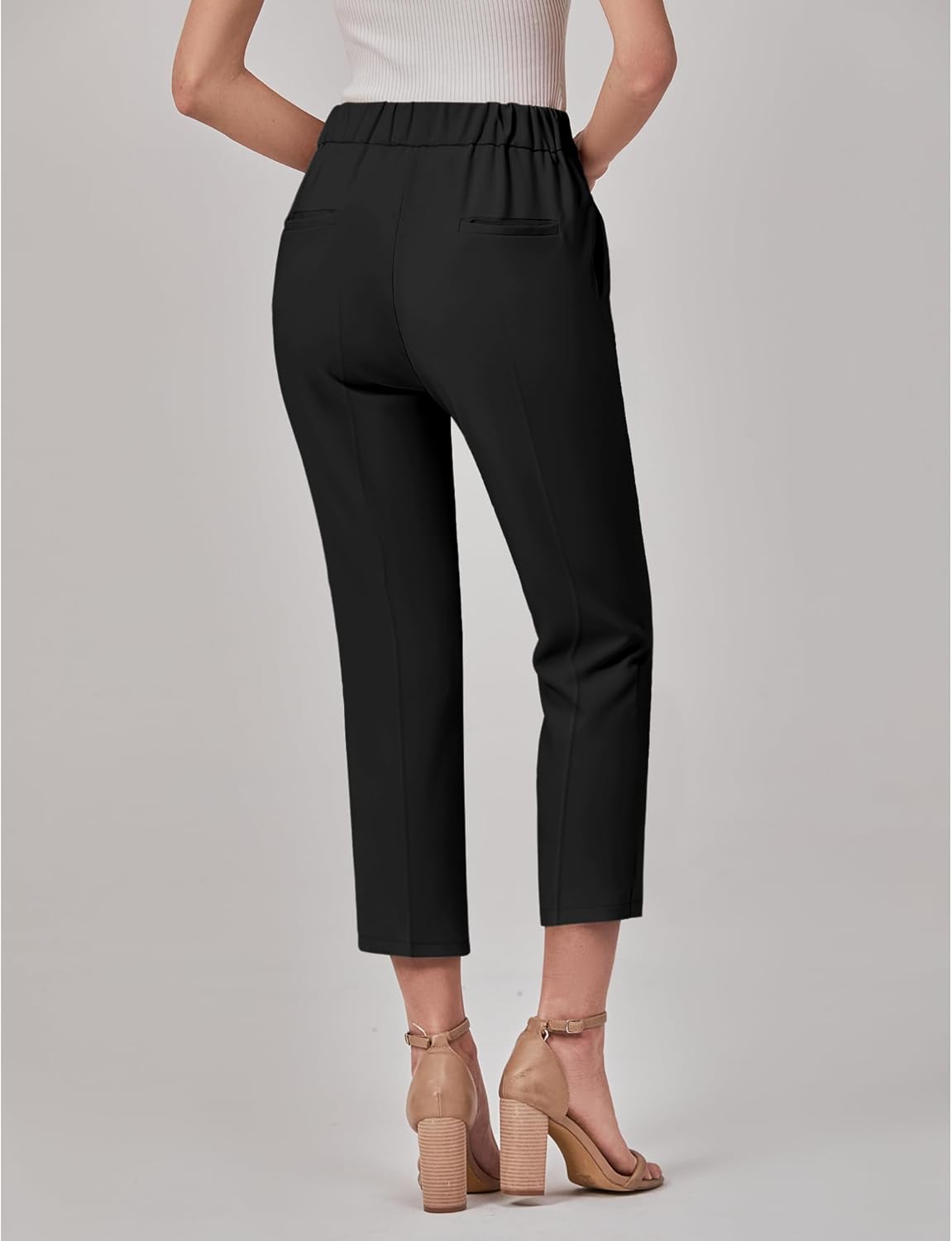 GRAPENT Capri Pants for Women High Waisted Pull On Dress Pants Slim Straight Leg Stretchy Waist Capris Trousers Pants