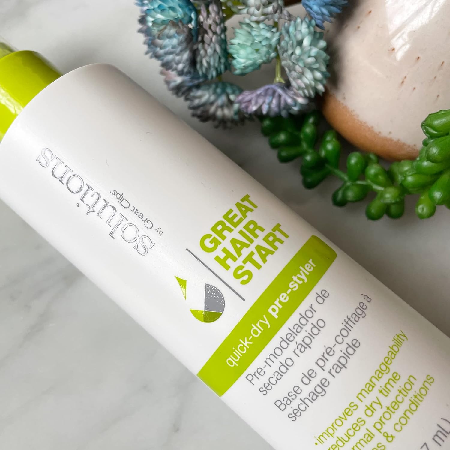 Solutions by Great Clips Quick Dry Pre-Styler is a versatile multi-benefit hair primer, as it leaves hair soft, moisturized, tangle-free and manageable.