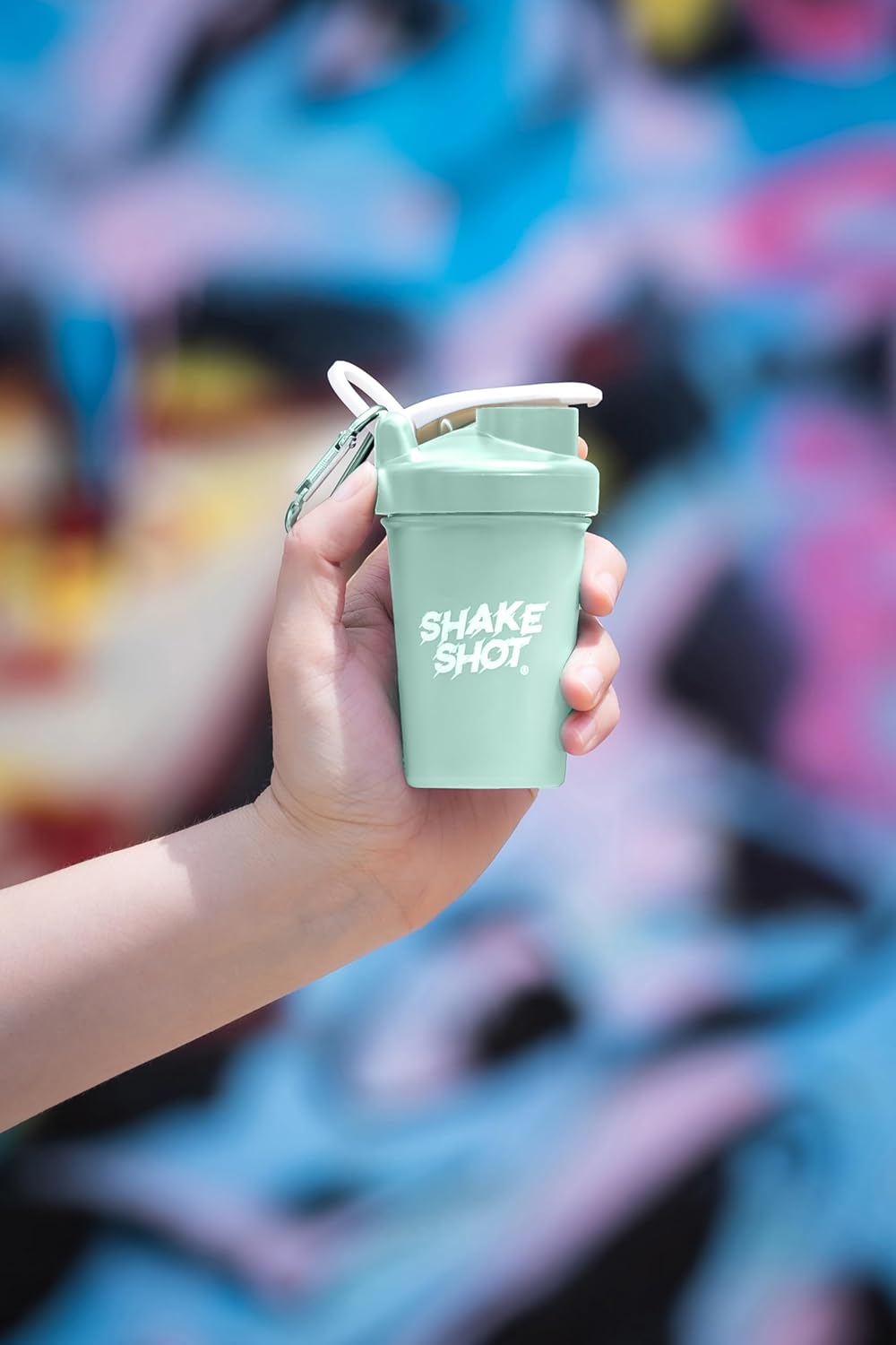 Shake Shot is a mini shaker bottle with a carabiner clip to easily attach to your gym bag, backpacks, or keys to work as a supplemental container for storage and a shaker cup all in one; no more dry scooping for working out!
