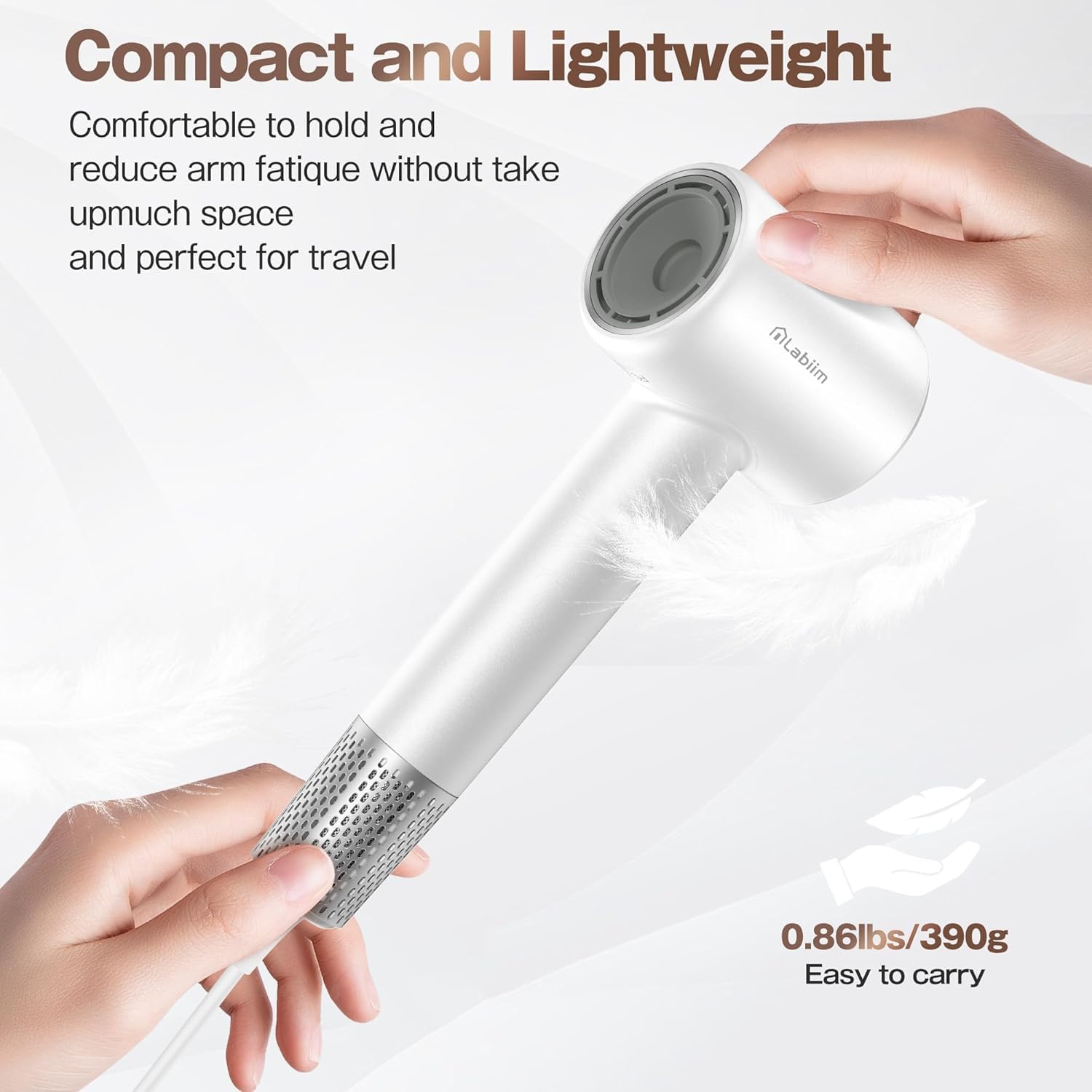 【Ultra-Fast Drying】Labiim magnetic nozzle hair dryer is equipped with a 110,000 RPM high-speed brushless motor, providing a strong wind speed of up to 25 m/s. It only takes 2-5 minutes to dry hair, which is 5x faster than traditional hair blow dryer, makes your hair care routine efficient and enjoyable.