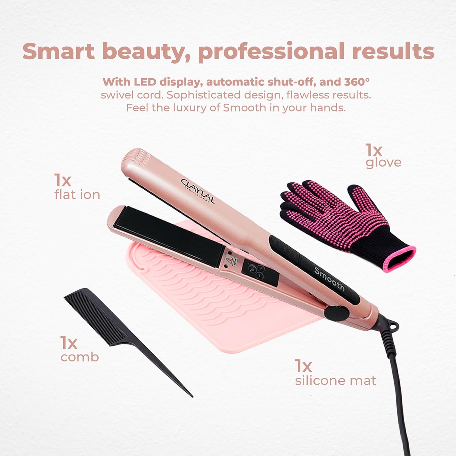Hair Straightener Smooth Claylal Professional Ceramic Coated – 480°F High Heat, 1 1/4″ Floating Plates, Keratin & Hair Treatment Sealing, Fast Salon-Quality Results, Dry & Wet Hair