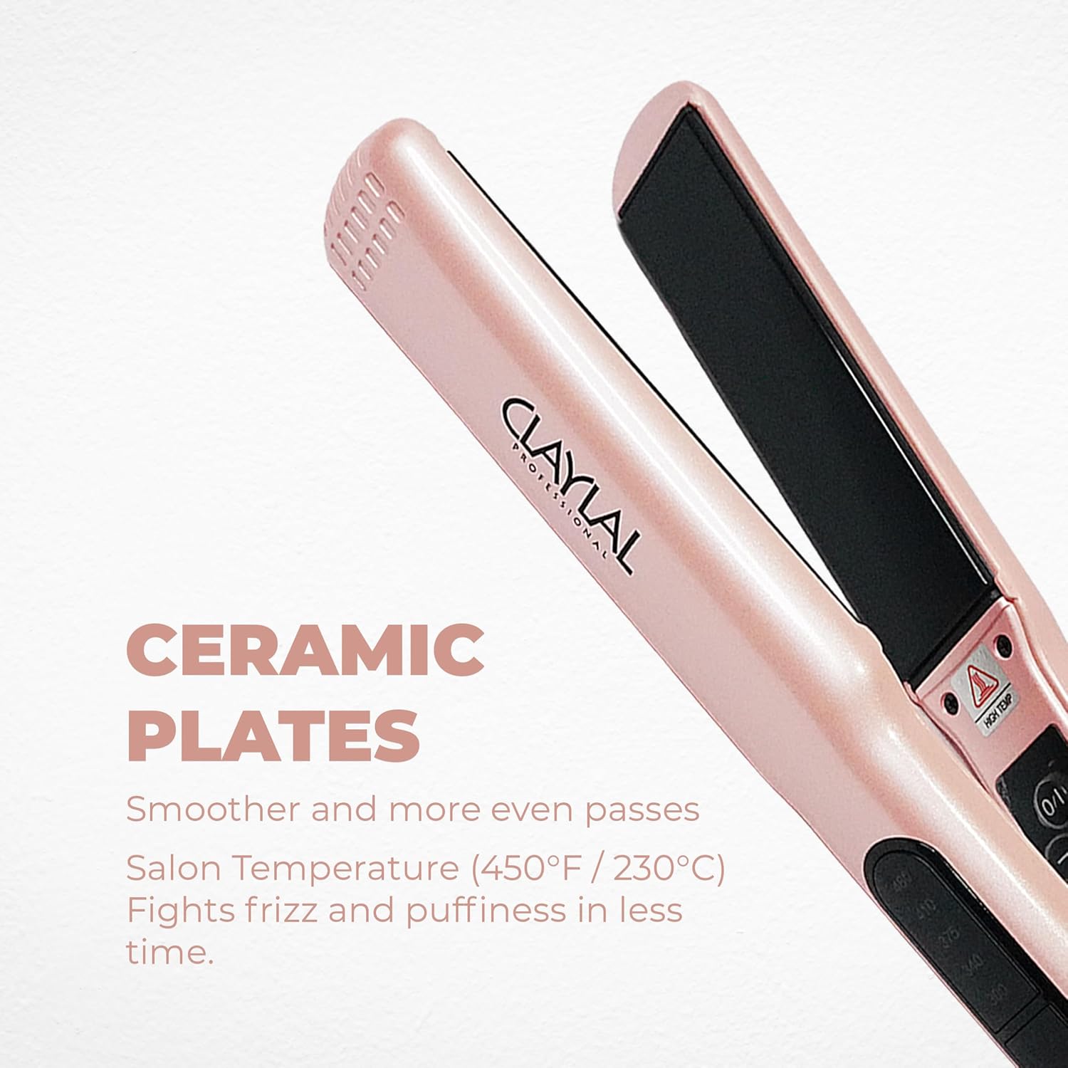 ✨【CERAMIC COATED FLOATING PLATES】The Smooth Claylal Professional features 1 1/4″ floating plates with a ceramic coating that glide smoothly over the hair, distributing heat evenly to reduce frizz and prevent damage. Achieve a silky, shiny finish with every pass — perfect for daily styling or professional treatments.