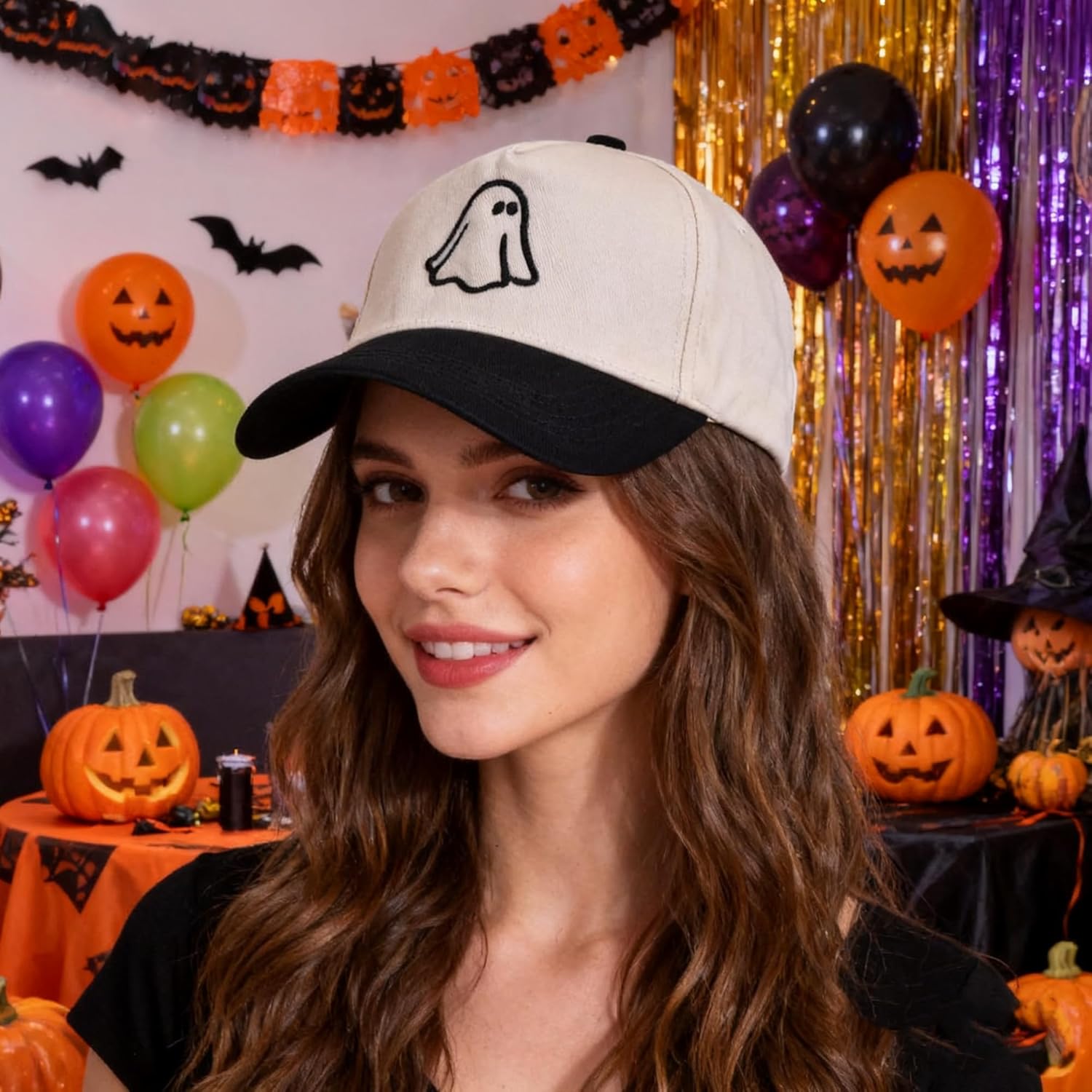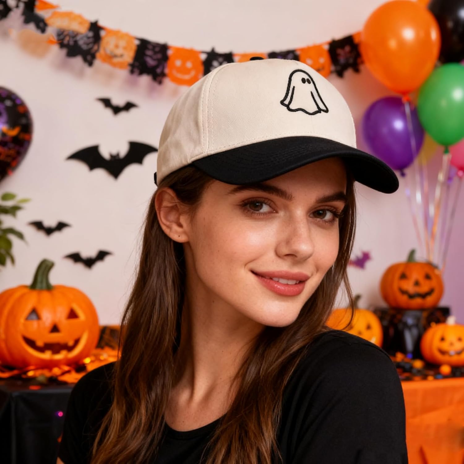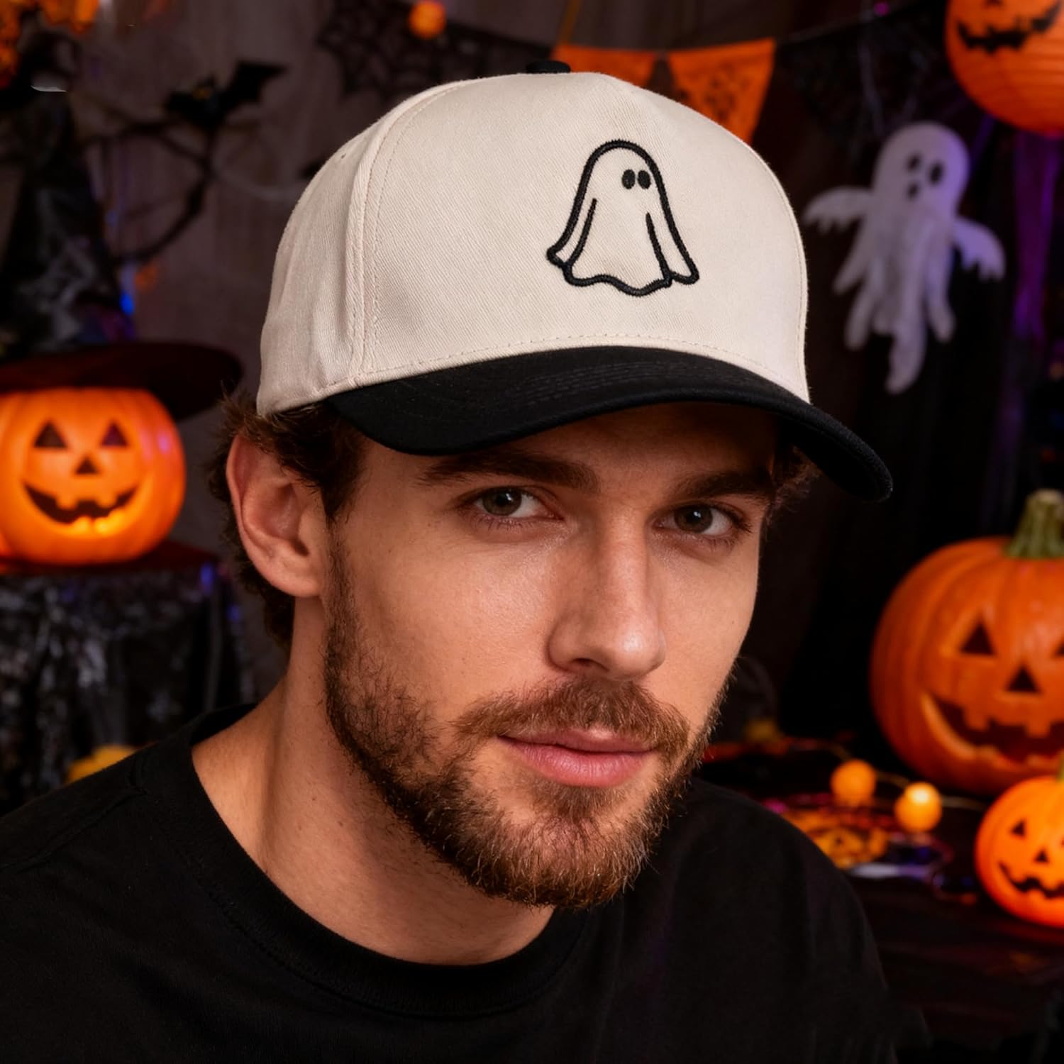 Halloween Hat- 3D Embroidered Adjustable Cotton Ghost Baseball Caps for Men Women