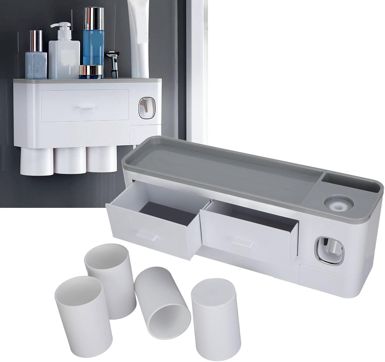 Hanging Magnetic Toothbrush Holder Set with Toothpaste Dispenser Squeezer Toiletry Drawer Holder for Bathroom