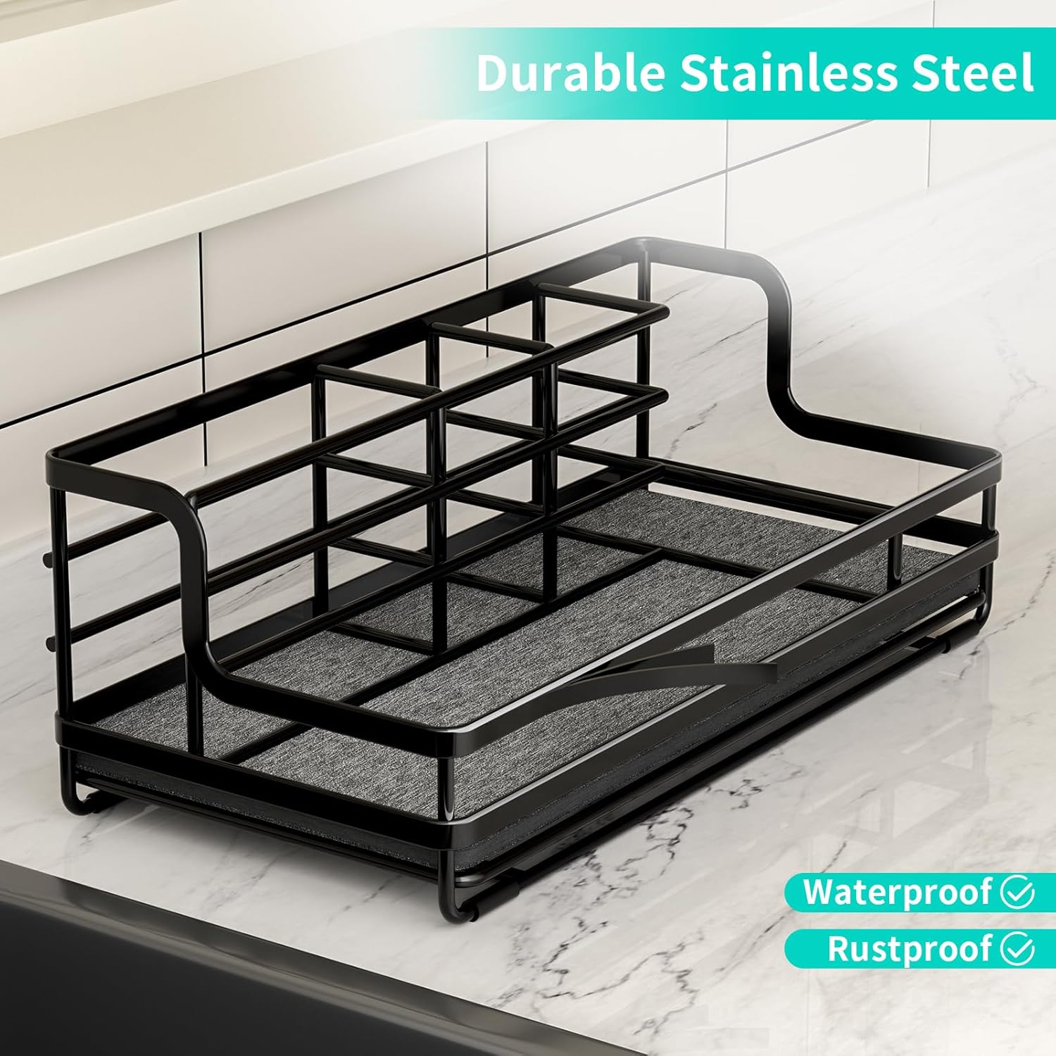 [Anti-slip Bathroom Accessories]: We know many customers will worry about instability of bathroom caddy. Therefore, our bathroom sink caddy added non-slip rubber feet. No need to worry about sliding and stability of this bathroom organizer
