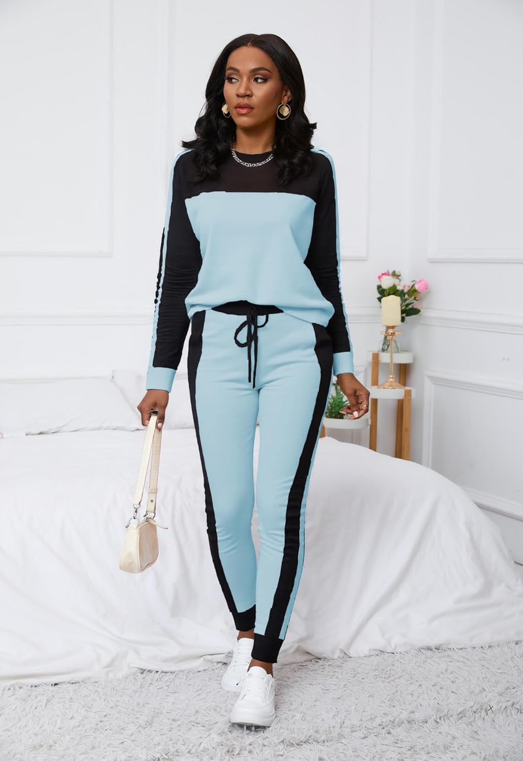 Womens Classic Color Block Jogger Sets Patchwork Matching Tracksuit