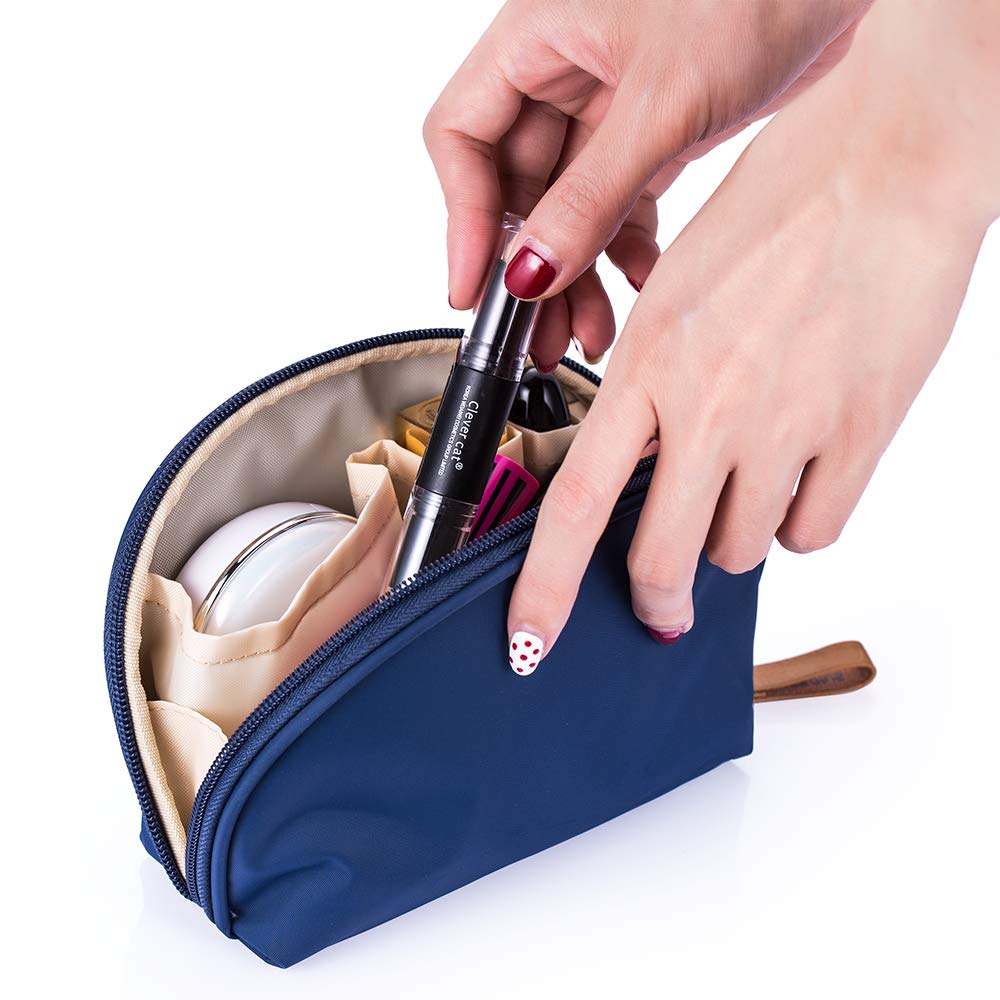 Hekyip Half Moon Cosmetic Bag, Travel Makeup Pouch, Portable Waterproof Cosmetic Pouch for Ladies Women, Small (NAVY BLUE)