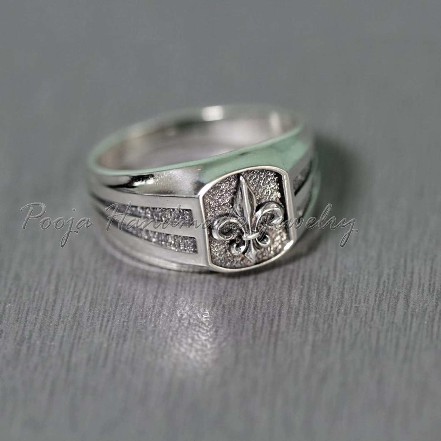 Heraldic Lily Fleur-De-Lis Mens Signet, 925 Sterling Silver Ring, Western Ring, Vintage Mens Ring, Anniversary Gift, Fleur De Lis Jewelry, Mens Ring, Pinky Signet Ring, Wedding Ring