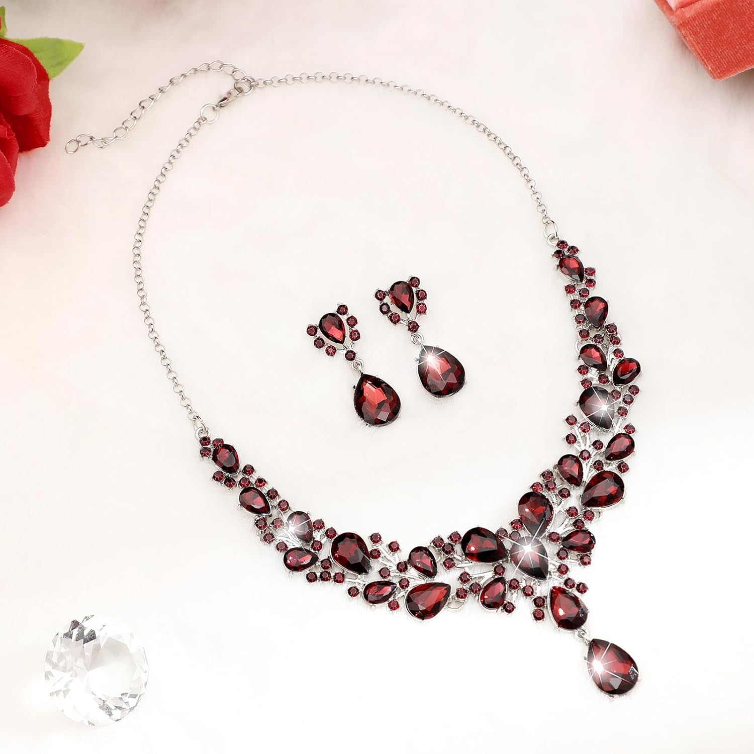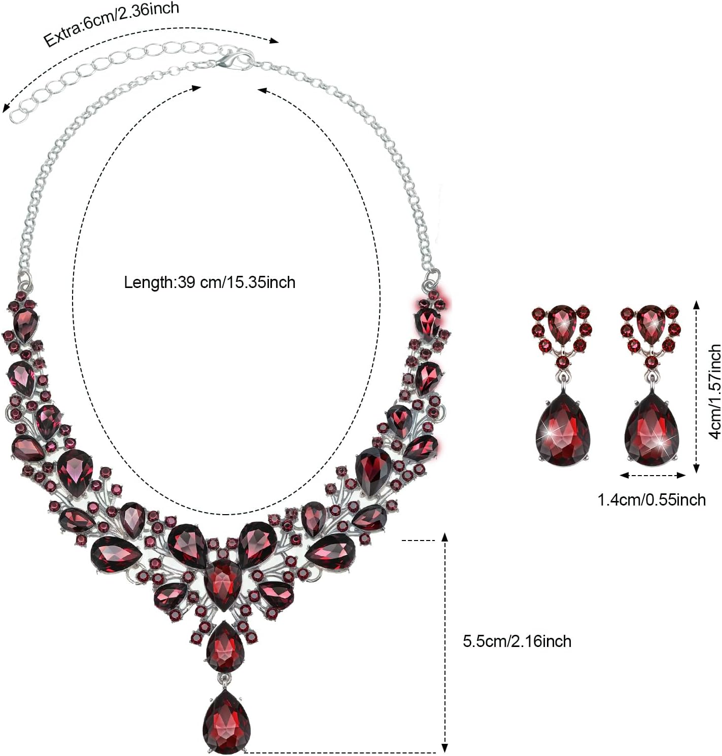 Hicarer Bridal Teardrop Cluster Crystal Jewelry Set for Women Necklace Earrings Wedding