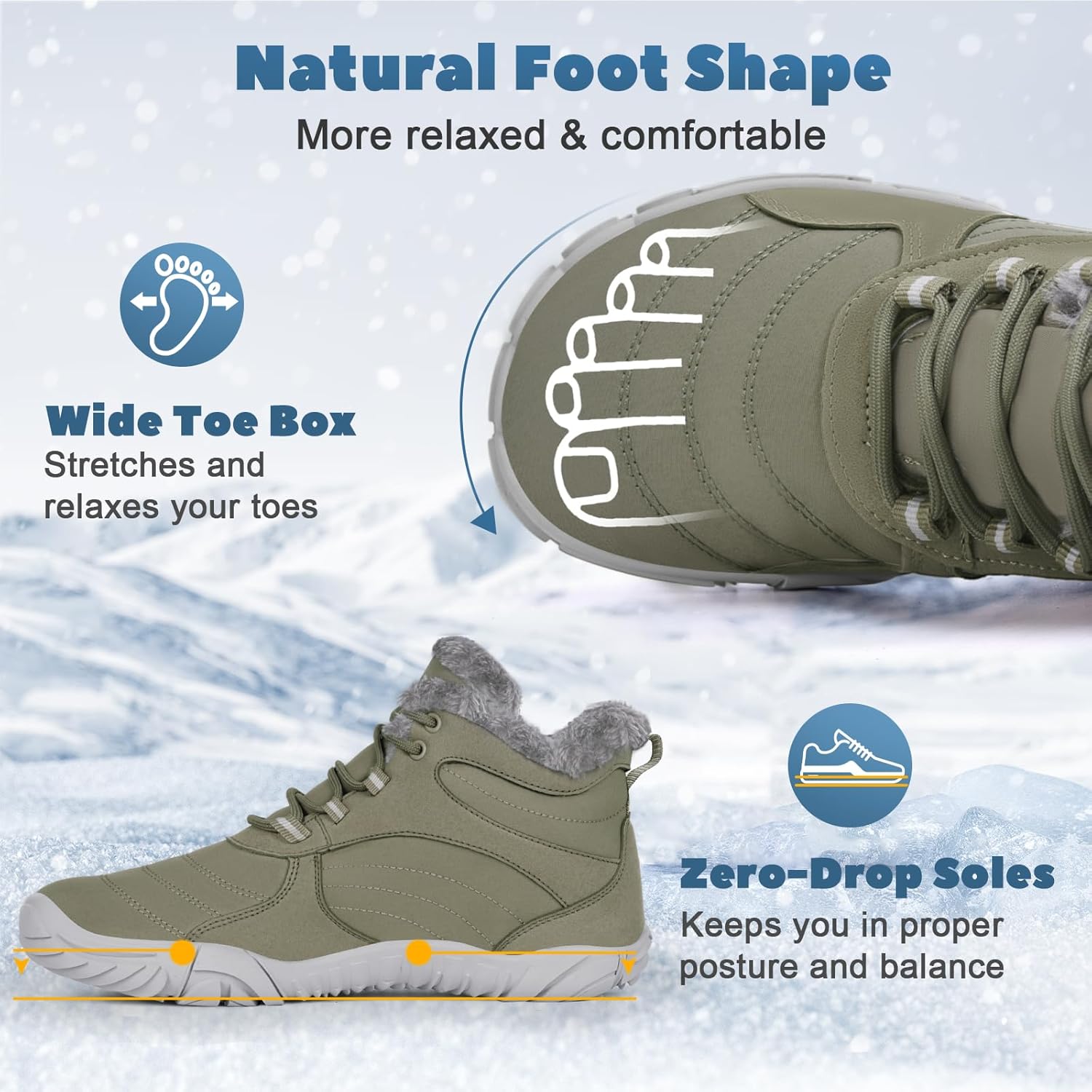 Hike Winter Footwear Barefoot Boots Mens Womens, Waterproof Winter Snow Boots, Warm Ankle Booties, Wide Toe Barefoot Hiking Boots, Non-Slip Zero Drop Sole Hike Shoes for Hiking Walking Outdoor