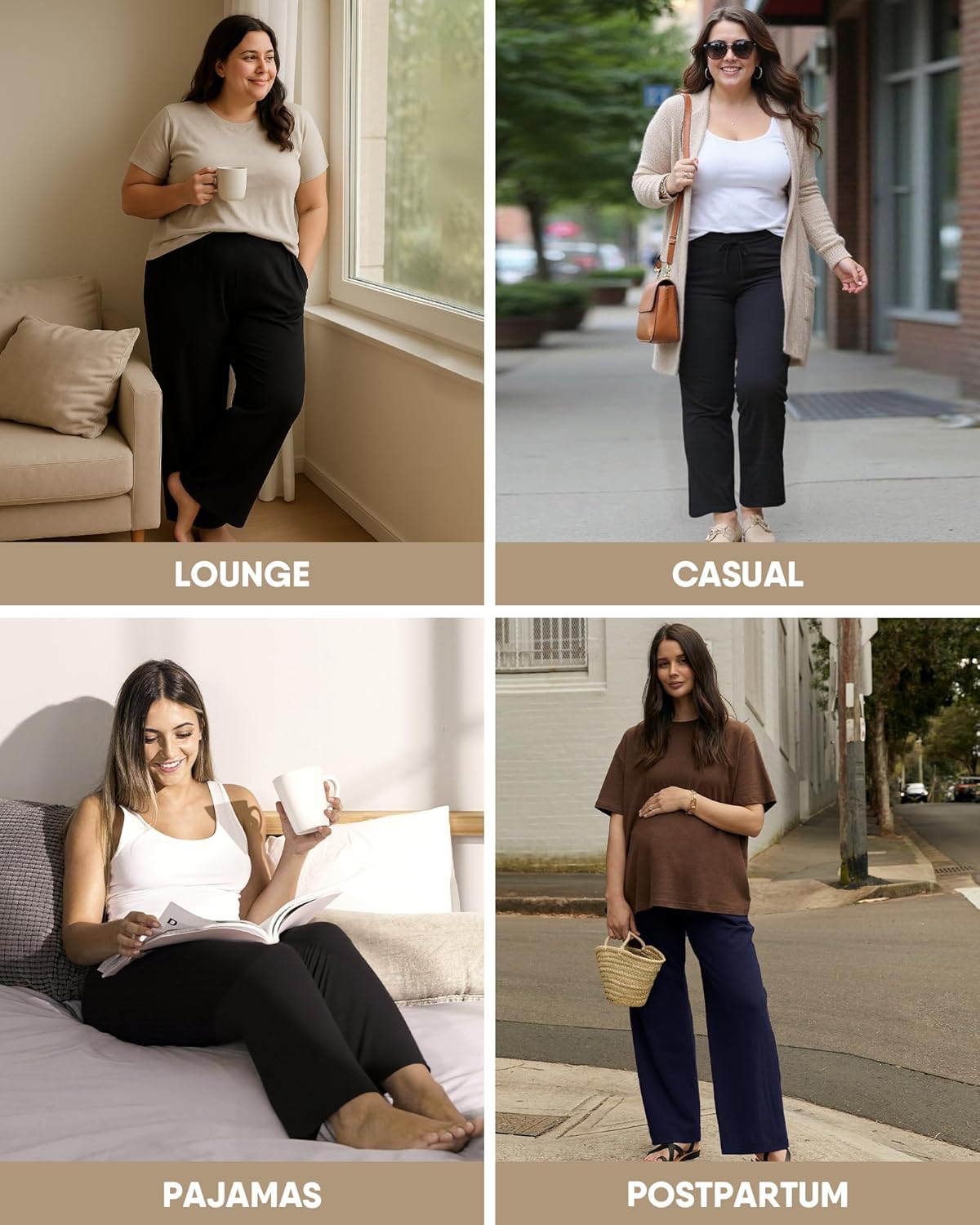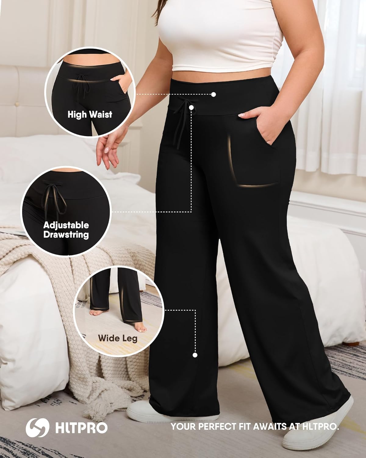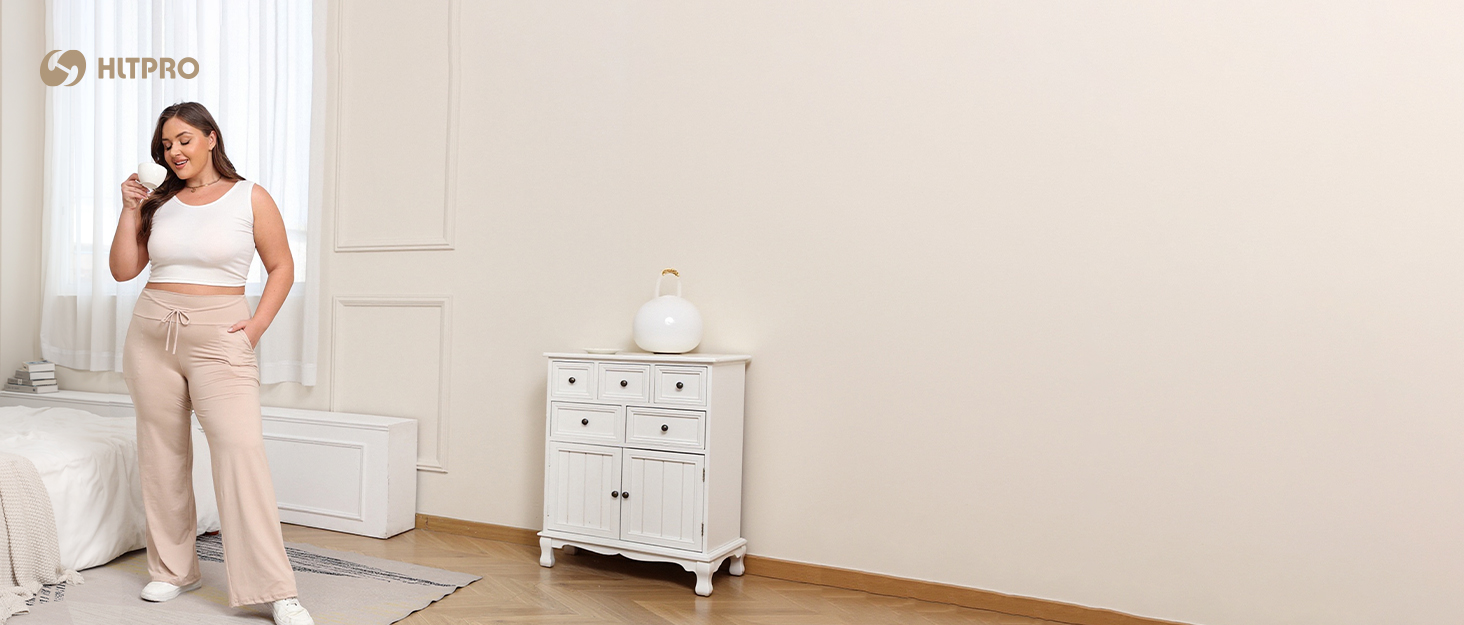 HLTPRO 3 Pack Pajama Pants Women Plus Size Wide Leg Pants Woman with Pockets Casual Lounge Palazzo Black Pant for Yoga