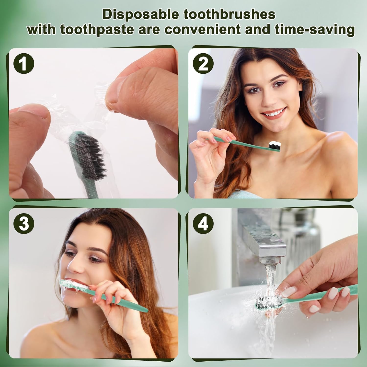 Hygiene And Safety: Disposable toothbrushes with toothpaste made of high-quality materials, each toothbrush is independently sealed to effectively isolate dust and bacteria, ensuring that each use is clean and hygienic, especially suitable for emergency needs in public places or short stays. Each toothbrush is independently sealed to ensure the product is clean and hygienic before distribution or use
