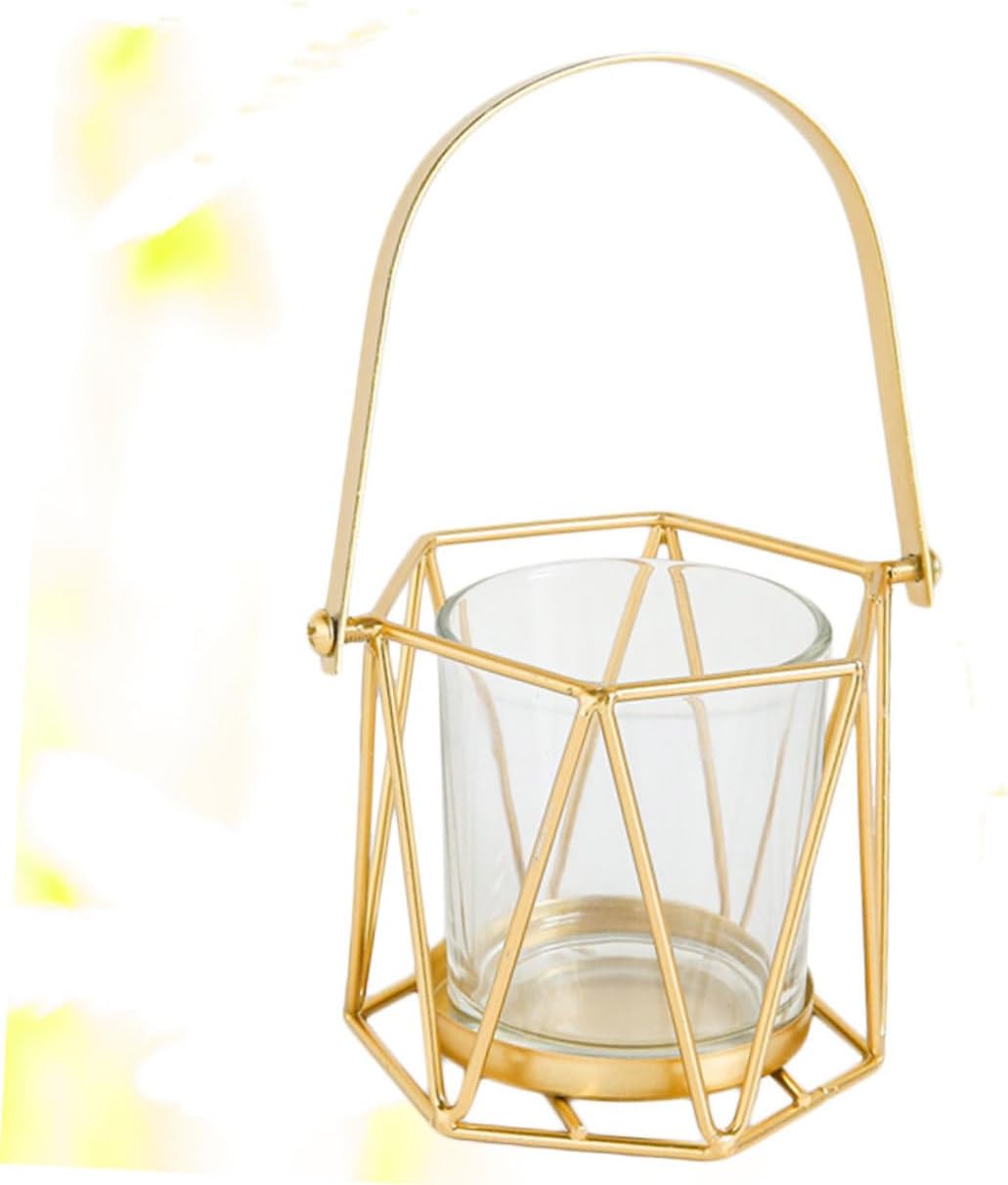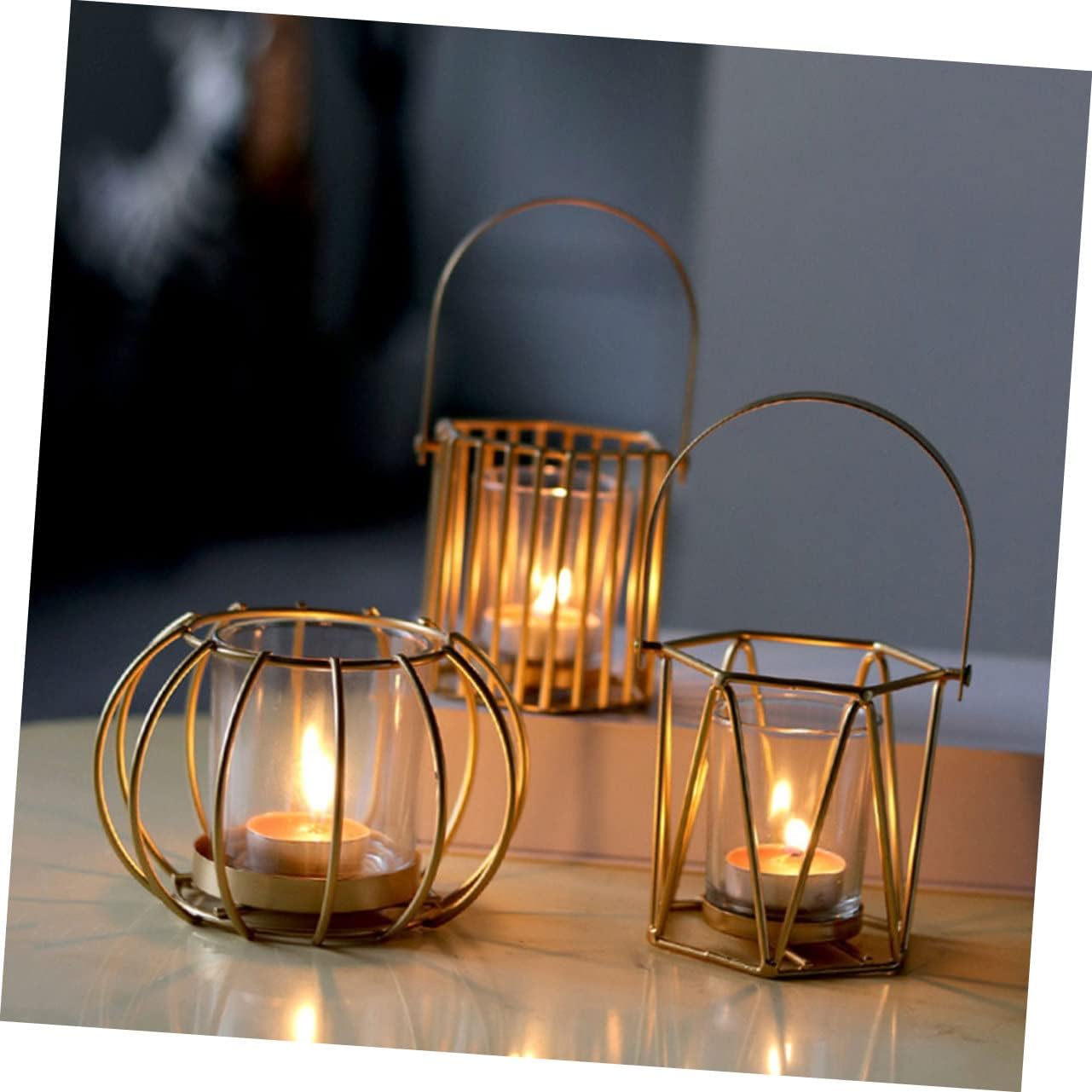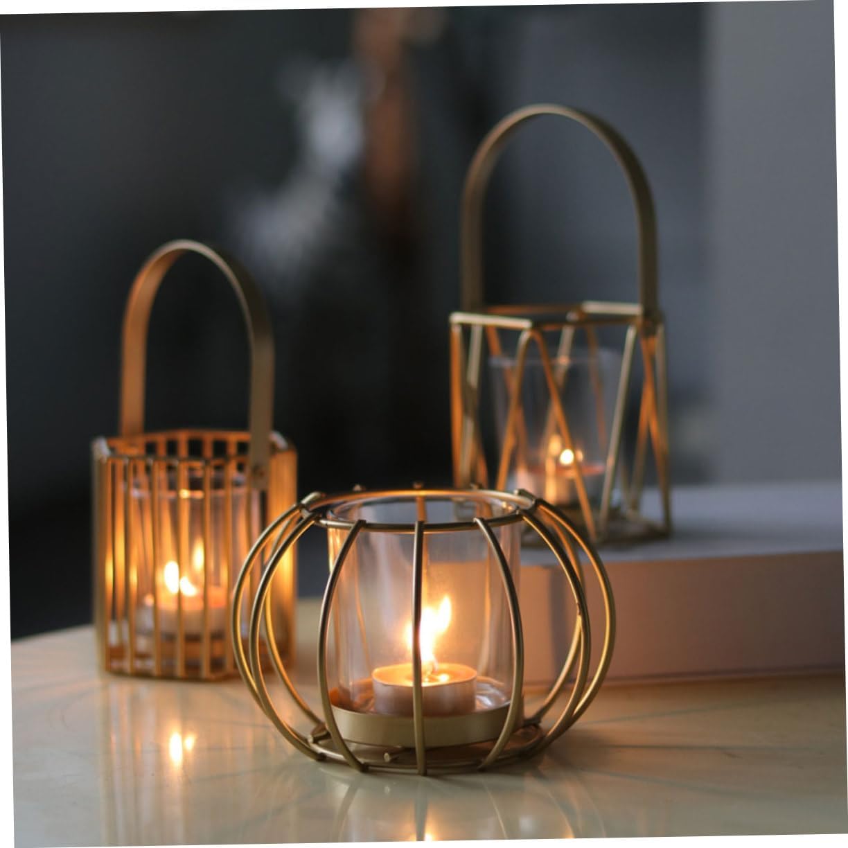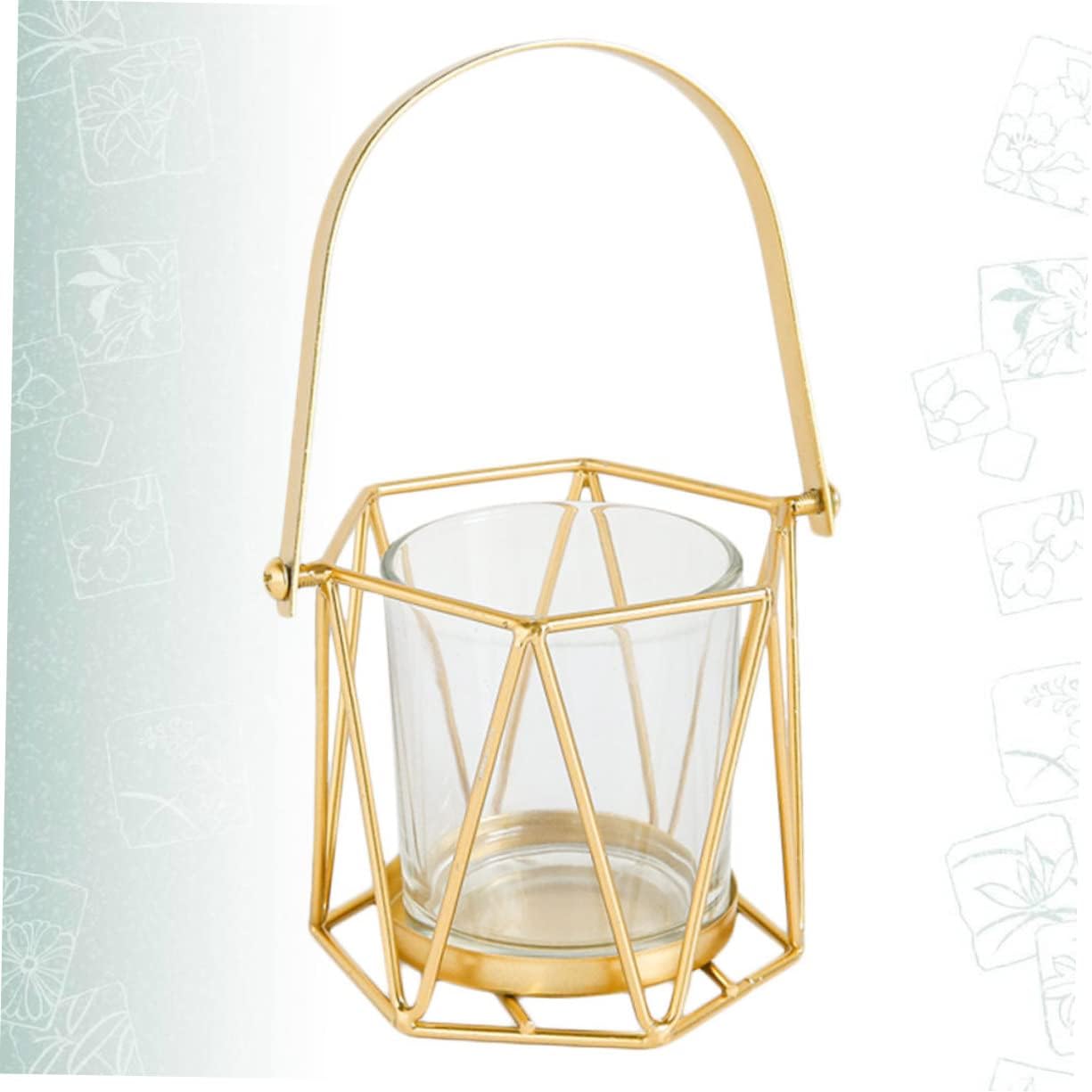 Tea Light Holder Made of iron and glass material, this candlestick is and practical, and decorative.Home Candle Holder Fine craft make it not easy to fade and deform.Household Decoration Featuring hollow out design and handle for convenient carrying
