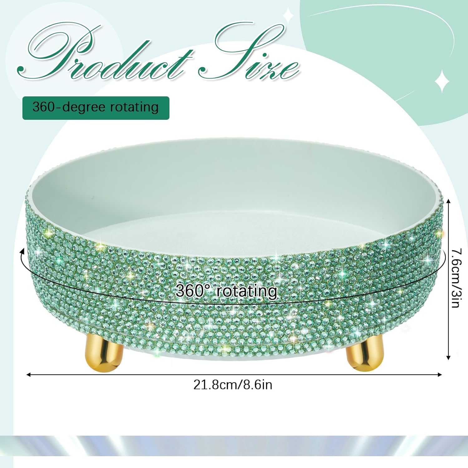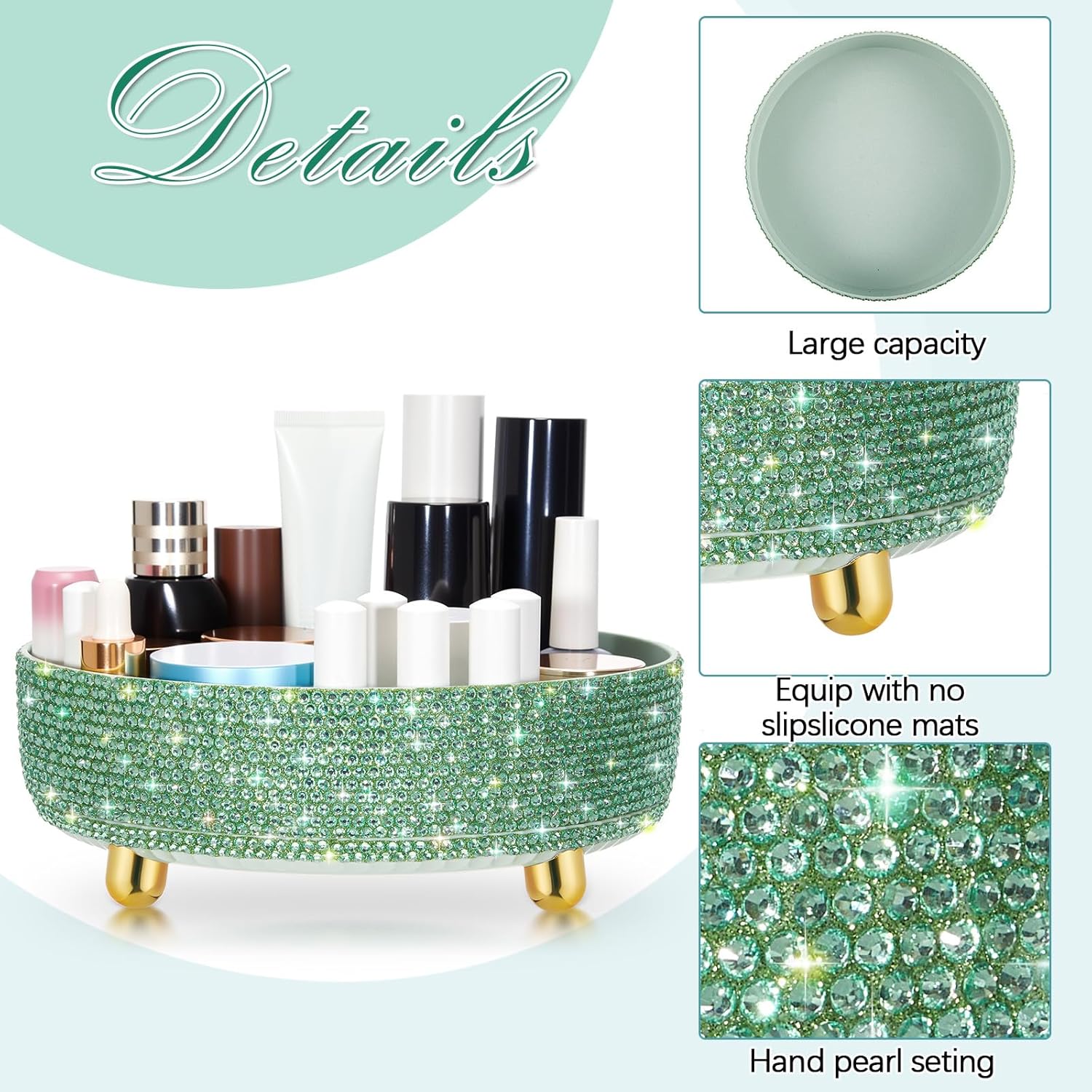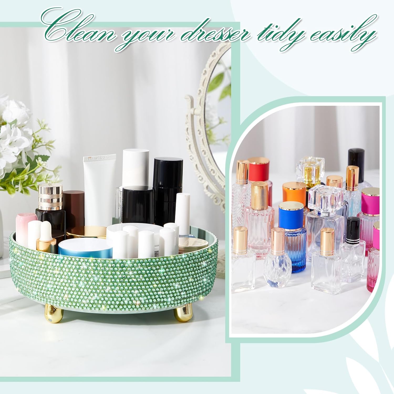 Honeydak Bling Perfume Makeup Organizer Rhinestone Bathroom Organizers and Storage 360 Rotating Makeup Organizer for Countertop Women Girls Essentials(Green,Rhinestone)