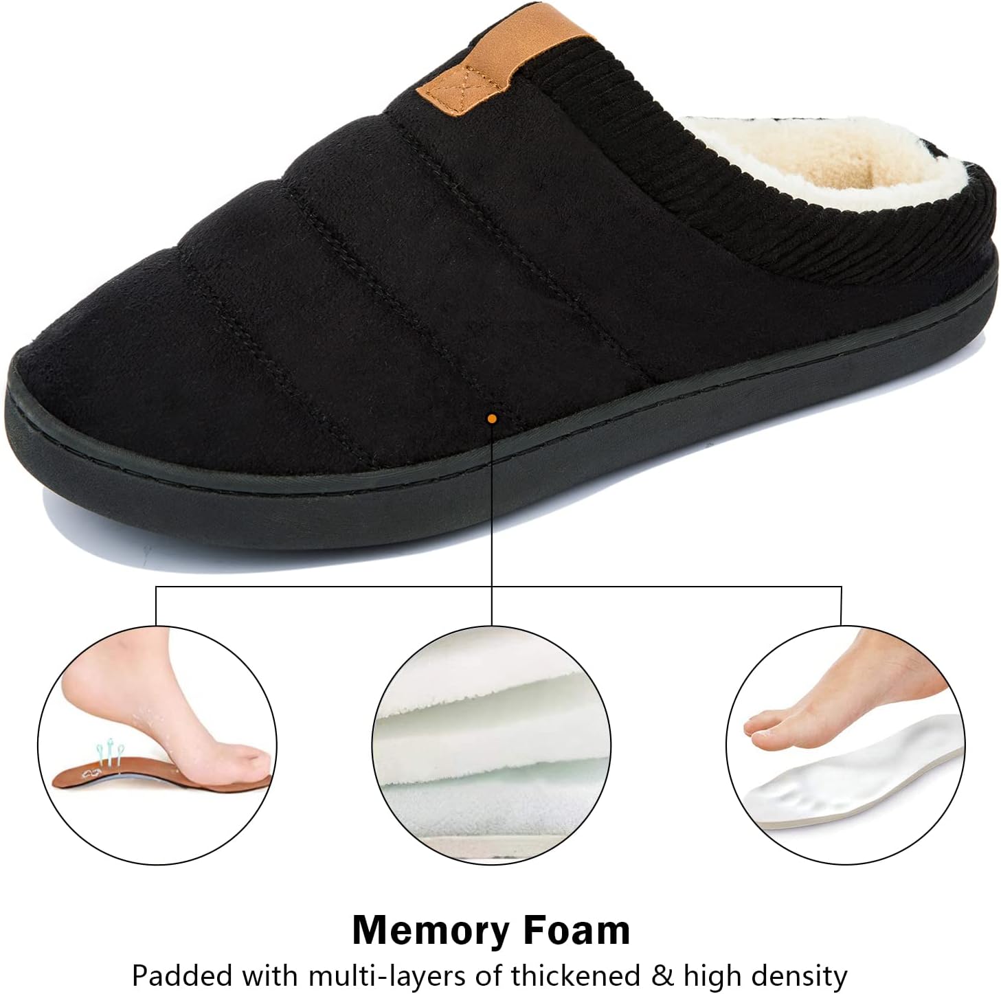 House Slippers for Men Memory Foam Indoor Slippers With Fuzzy Lining Bedroom Slip on
