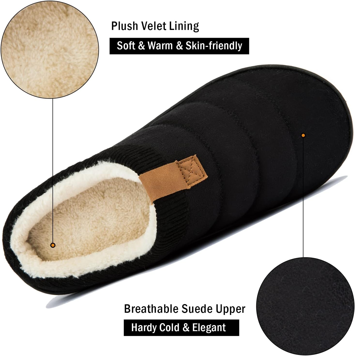 Breathable Upper: Made of suede fabric, which is ventilates the interior and absorbs moisture away from sweaty feet. The slippers upper is designed with line stitching, reflecting the vegan and vintage design style. Skin-Friendly Plush Lining: Cozy and moisture-absorbing velvet lining, which can heat up quickly and keep warm, when you step into our slippers, you will feel warm. Comfort Support: The memory foam insole is soft and elastic to enhances arch support to reduce the pressure on the foot, while contouring to your foot providing you with like walking on a pillow. Durable Rubber Outsole: Wearable and flexible rubber outsole makes the slipper is non slip, provides traction and stability when walking on slippery floors, suitable for indoor and outdoor wear. Multi-Use: Great slipper are suitable for men of all ages and different lifestyles, warm house slippers prefect for walking, checking the mailbox, playing in the yard, etc. Ideal for yourself or as a gift.