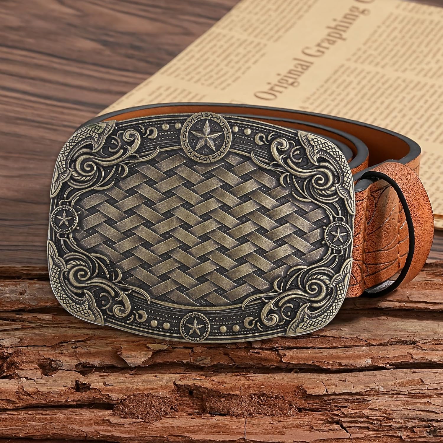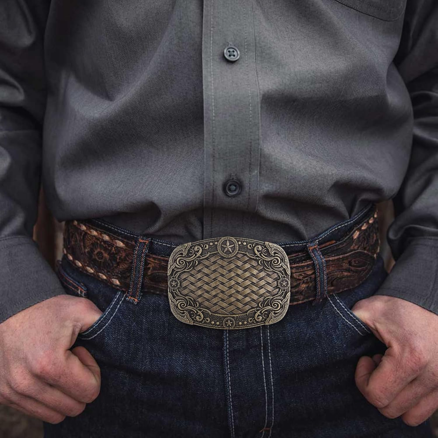 Style: Texas Star Belt Buckle with Woven Pattern