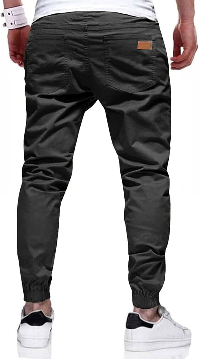 HUNGSON Men’s Slim Fit Casual Cargo Pants with Drawstring Long Pants