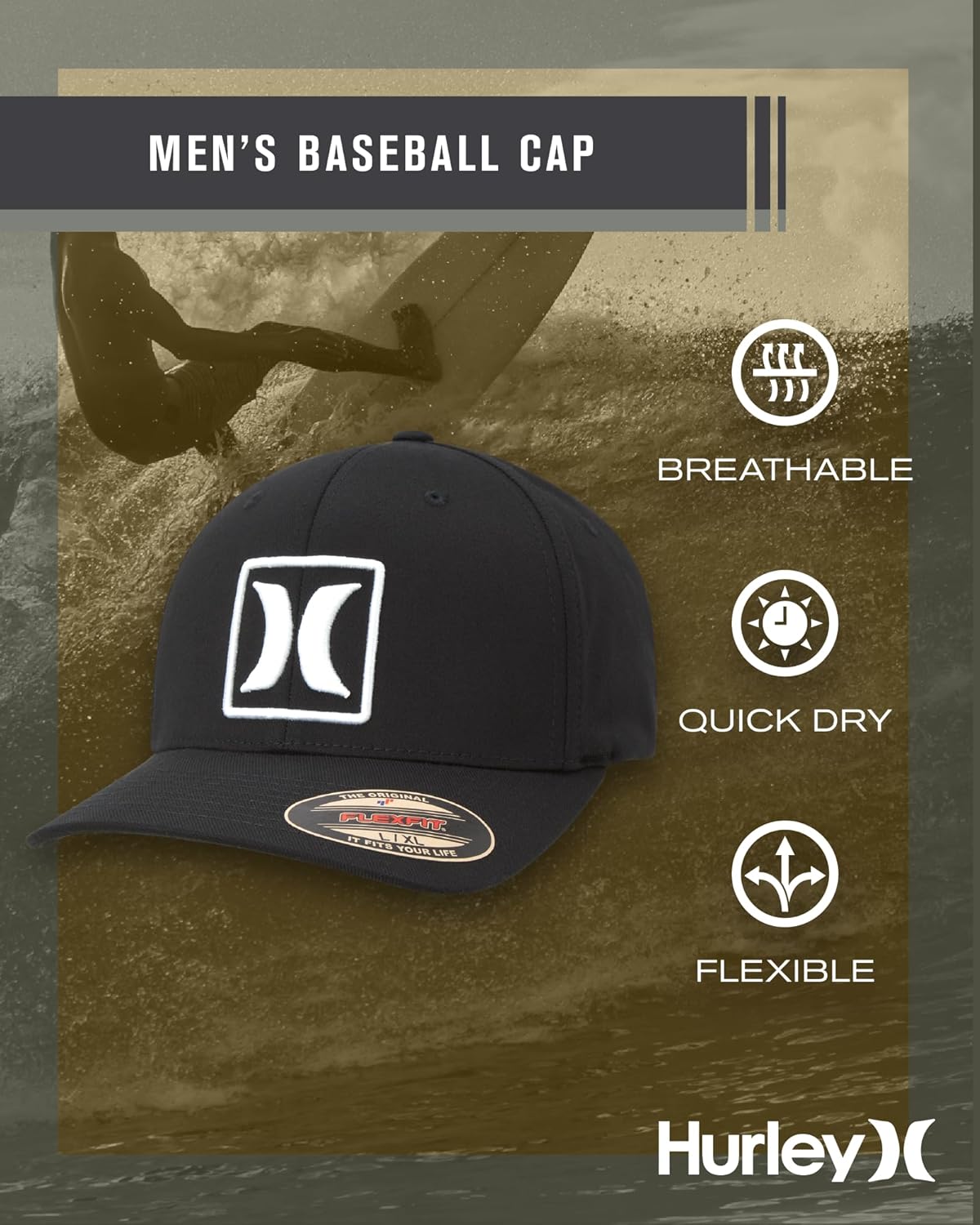 Hurley Men’s Caps – Reflect Icon Curved Brim Baseball Cap – Fitted Hats for Men