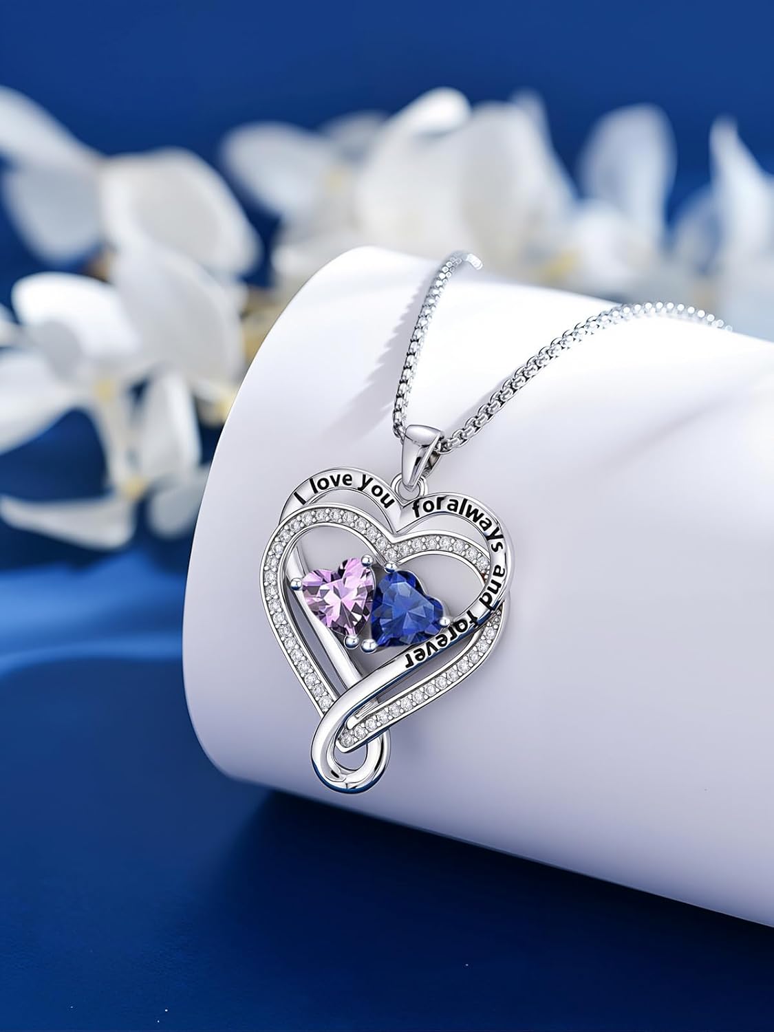 Introducing our enchanting “I Love You for Always and Forever” Double – Heart Birthstone Heart – Shaped Pendant Necklace,Whether it’s a gift for a significant other, a beloved family member, or a cherished friend, this necklace is sure to leave a lasting impression.