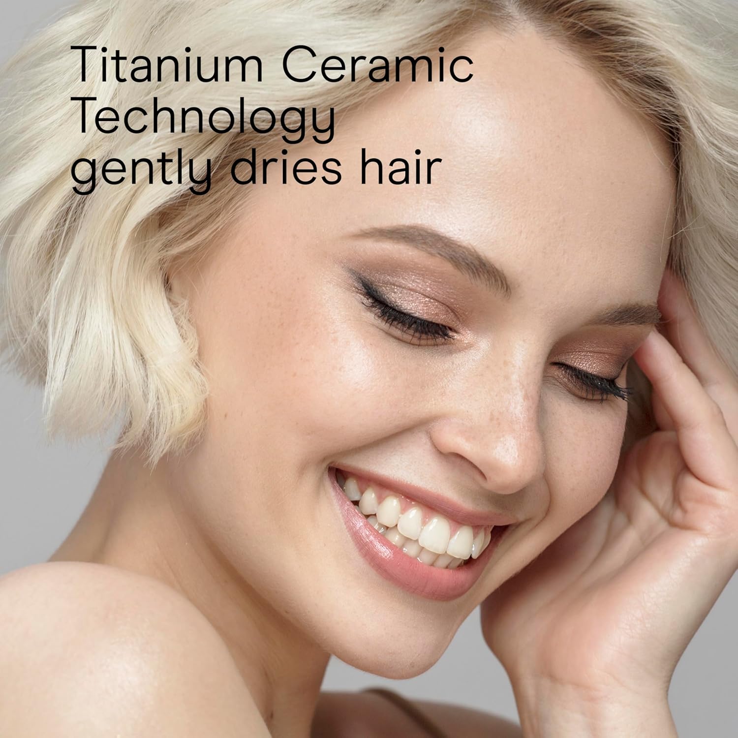 NO FRIZZ, NO FUSS: With 1875 watts of power, this compact INFINITI PRO CONAIR Hair Dryer gives you quick frizz-taming airflow, leaving hair smooth and shiny. Titanium Ceramic Technology creates even heat to protect hair from damage.