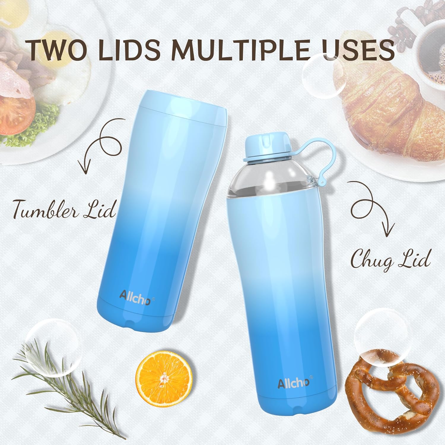 {Two Lids Multiple Uses} Enjoy versatility with our two lids. The chug lid is perfect for staying hydrated during sports, while the tumbler lid is ideal for peacefully savoring your coffee indoors.